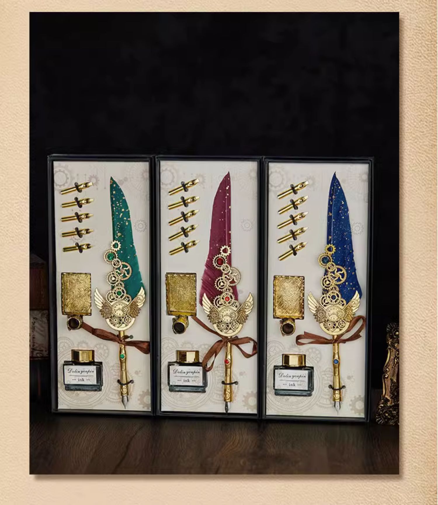 gray feather starry sky 10-piece set + gift bag + postcard