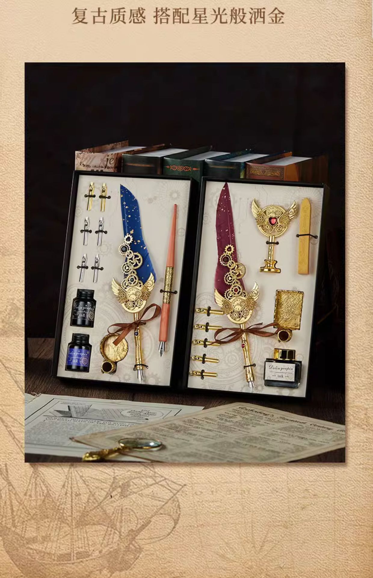 gray feather starry sky 13-piece set + gift bag + postcard