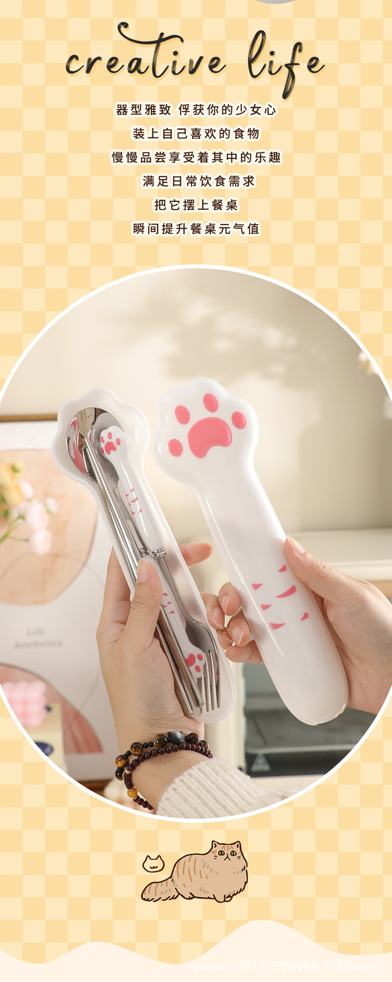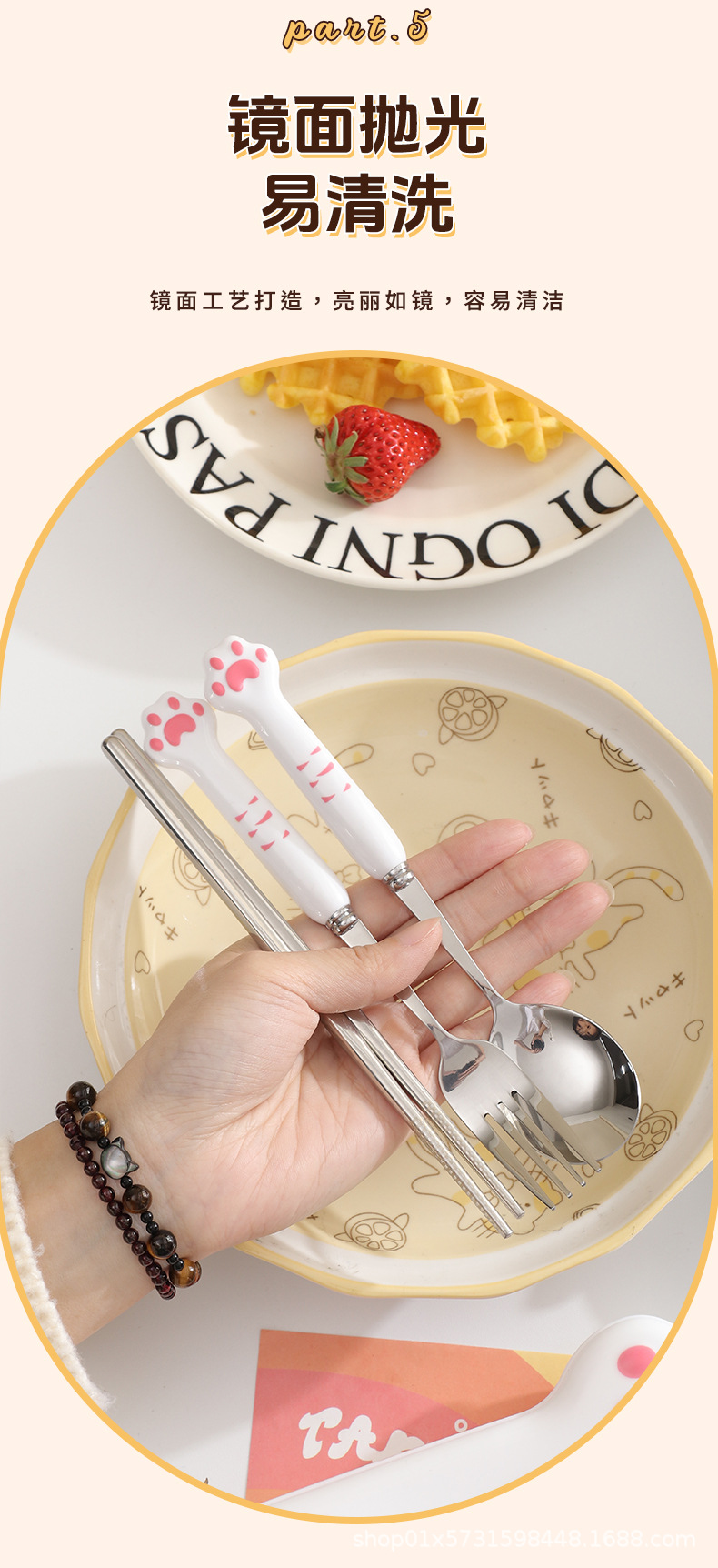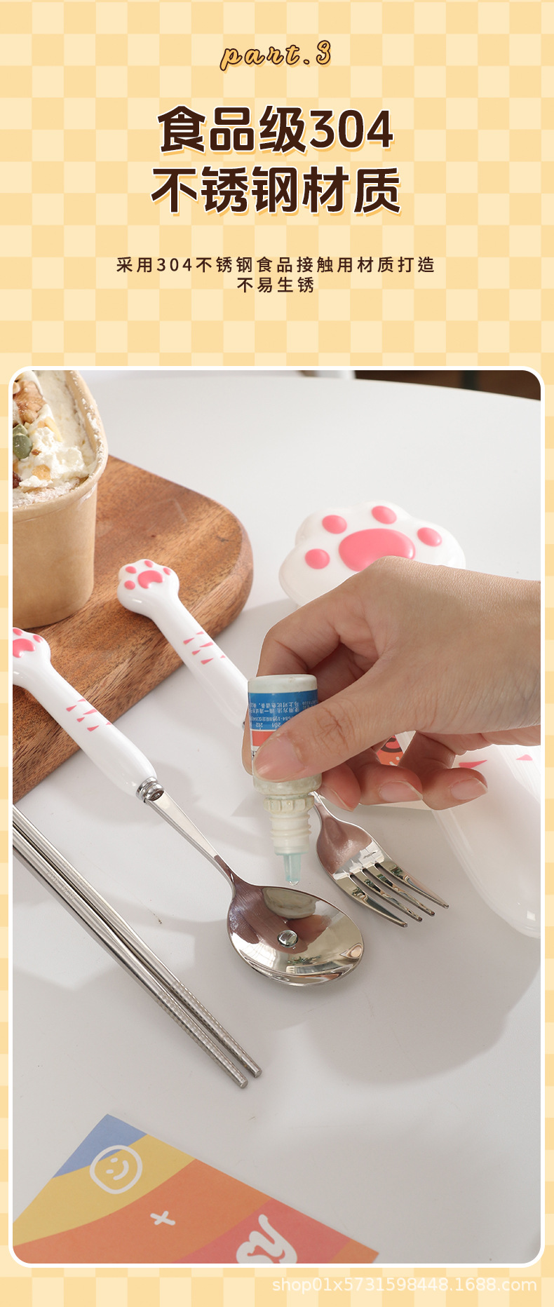 410 white handle powder claw spoon + fork + chopsticks + box