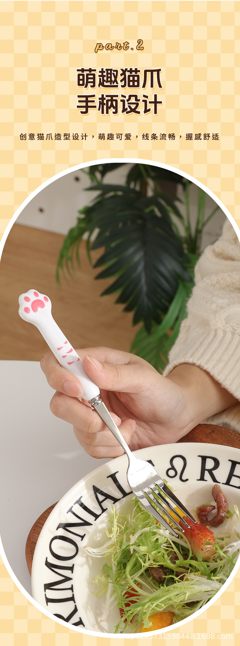 410 white handle blue claw spoon