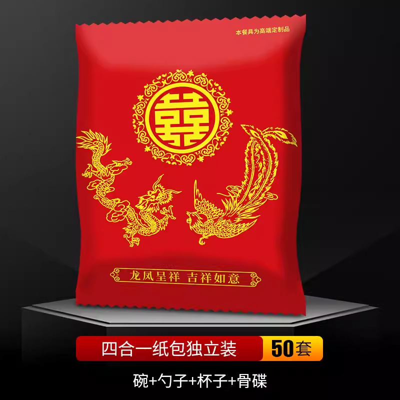 brown rice husk [prosperity brought by the dragon and the phoenix] paper bag four-piece set