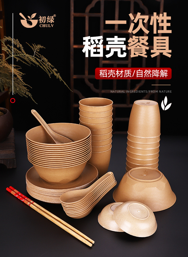 brown rice husk [bowl + cup + bone dish + spoon + chopsticks] plastic four-piece set + chopsticks
