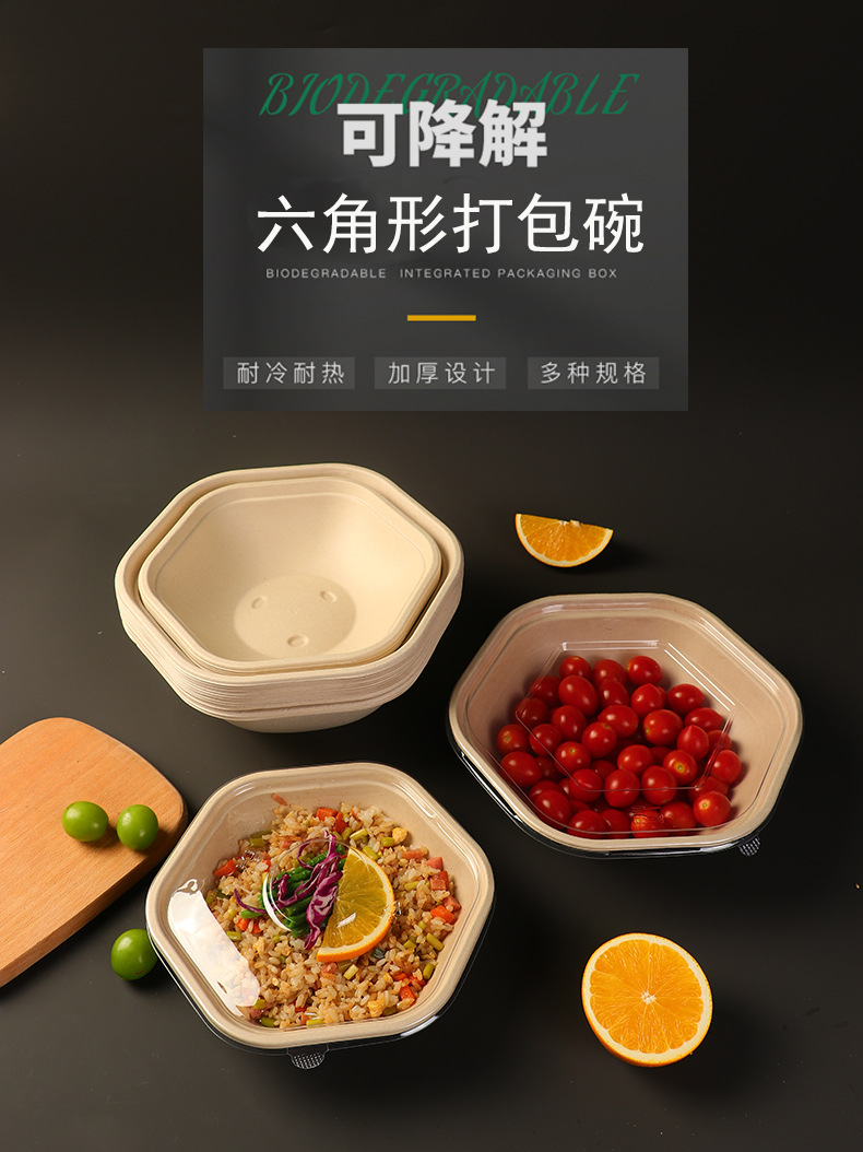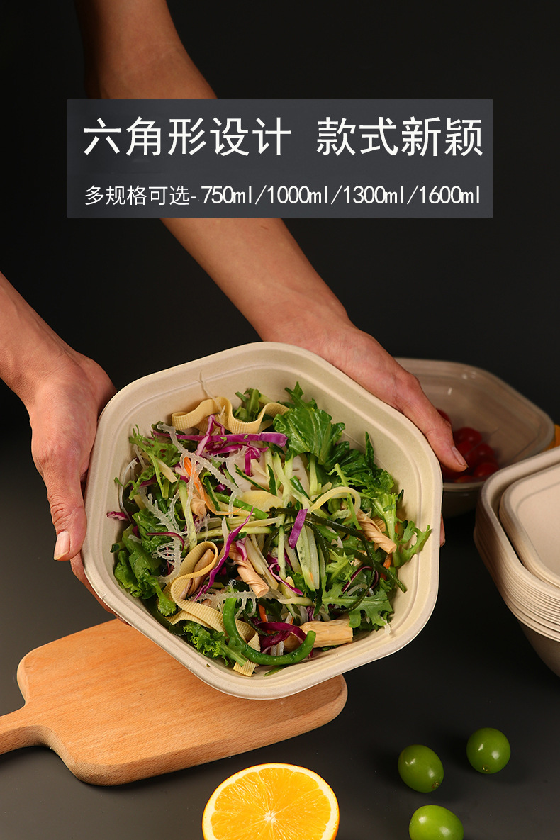 1600ml hexagonal bowl + pet cover + waist seal + material cup 50 sets