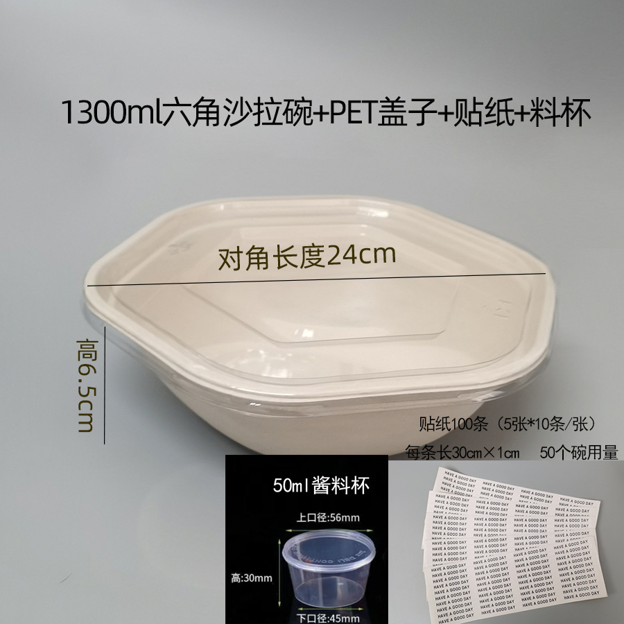 1300ml hexagonal bowl + pet cover + waist seal + material cup 50 sets