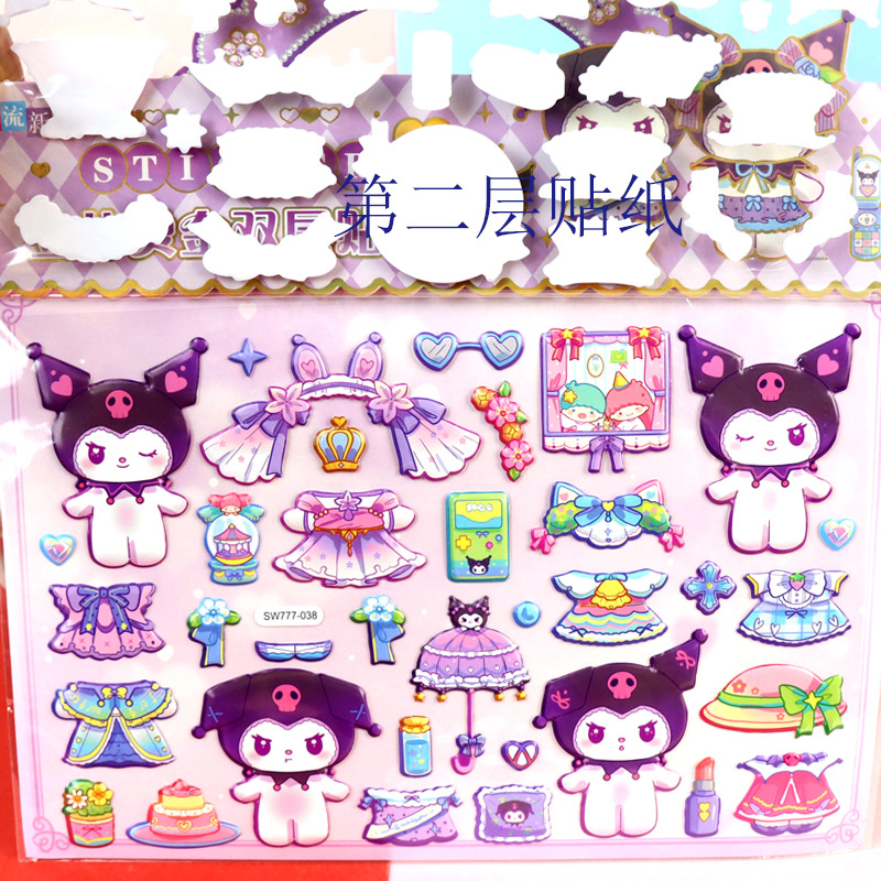 sanrio clow m clothes changing melody dressing up stickers cinnamoroll babycinnamoroll pom pom purin automobiles curtain cloth bubble stickers