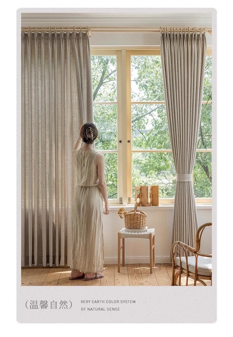 linen curtain cotton and linen woven pattern simple nanyang light french style fabric curtain living room wholesale