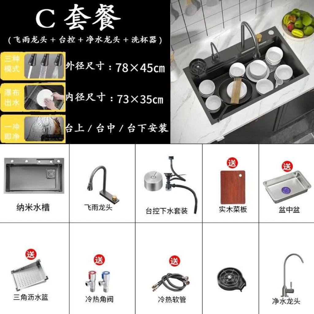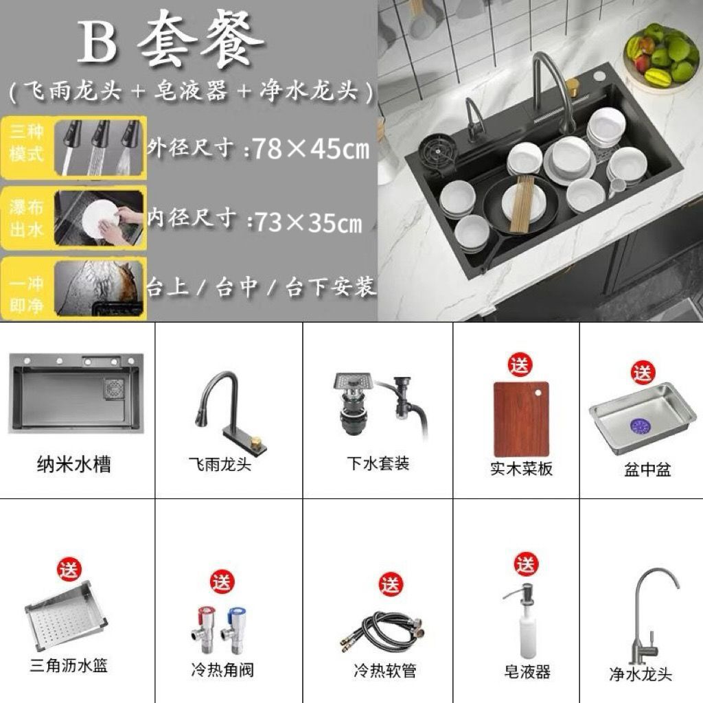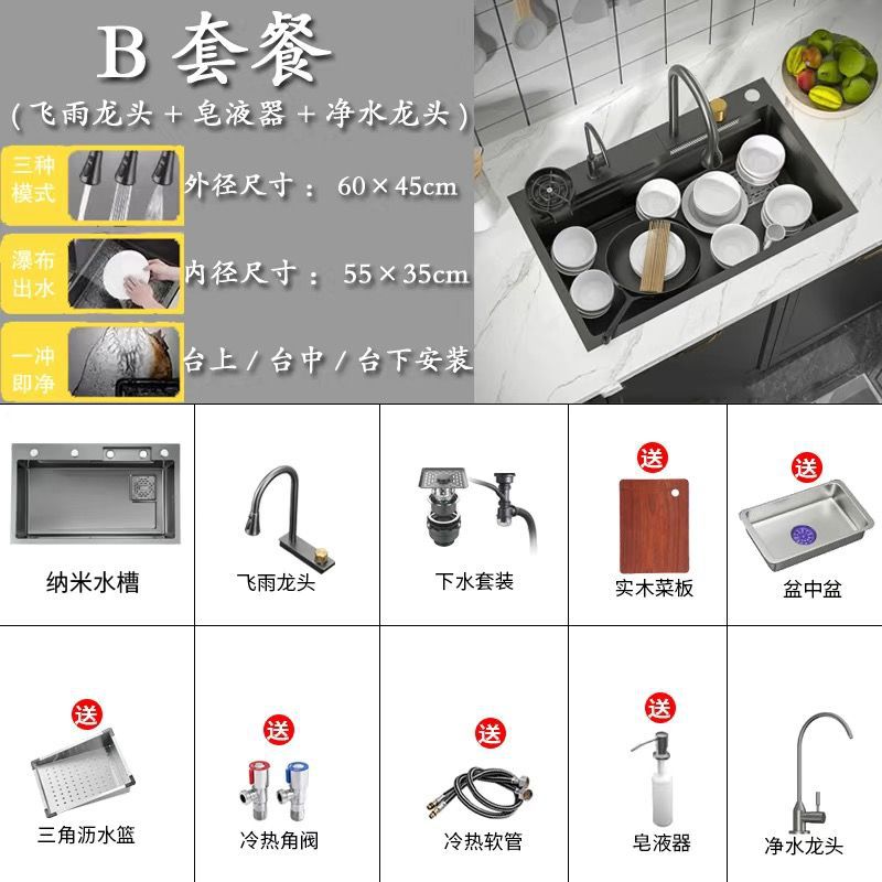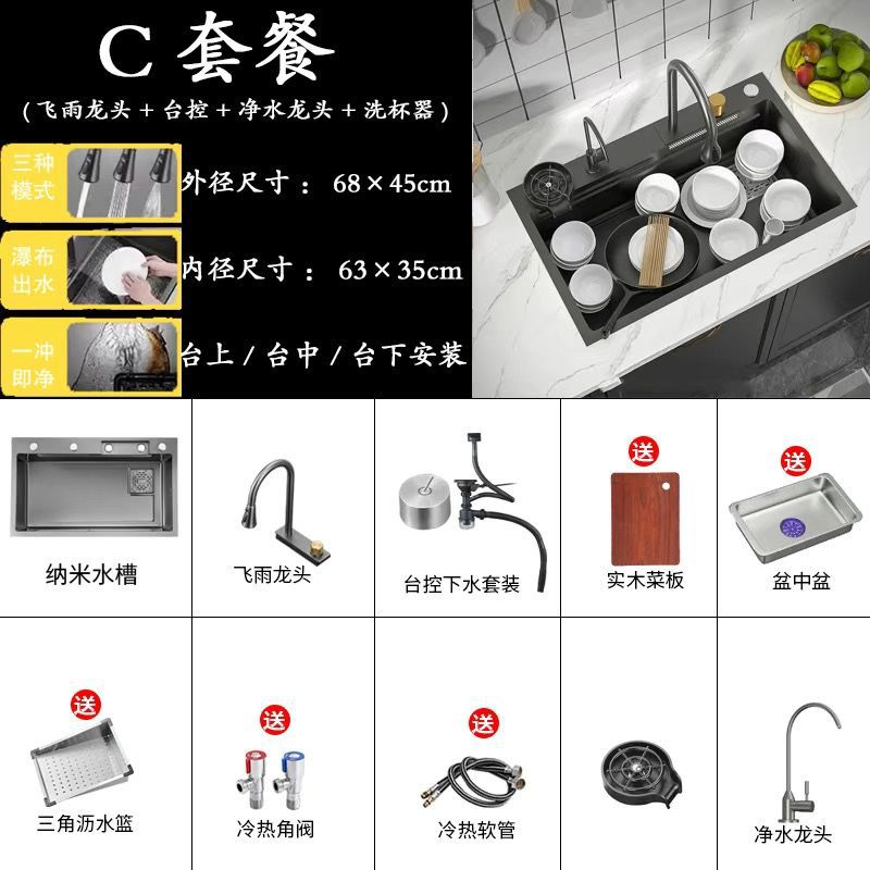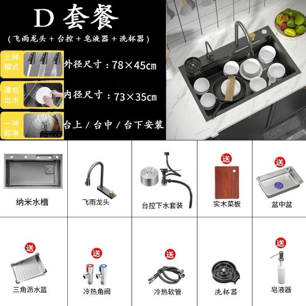 68*45 [feiyu waterfall] extra thick nano black-d package/feiyu faucet + taiwan control +