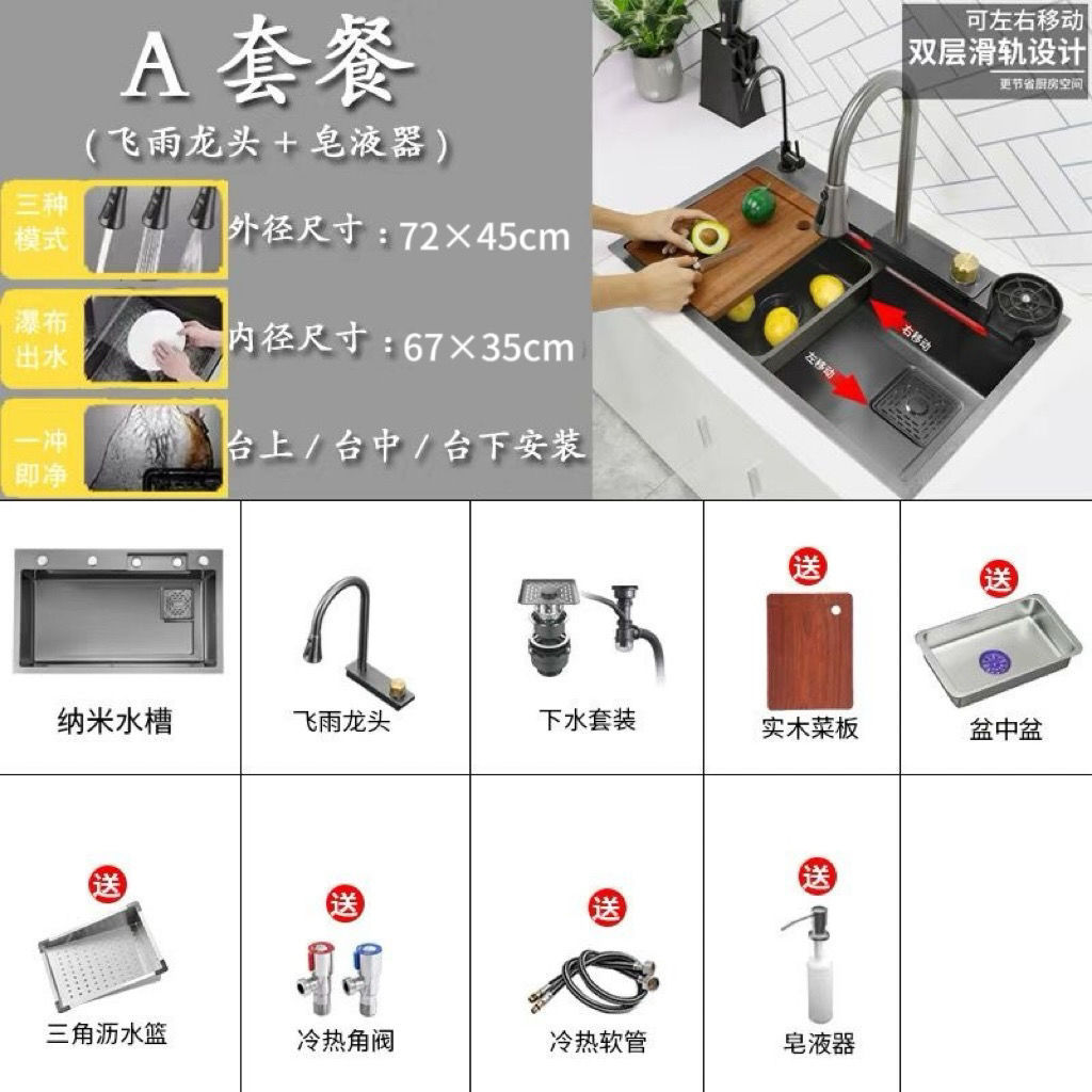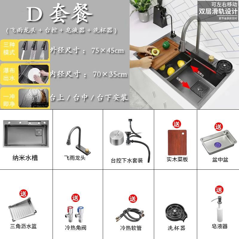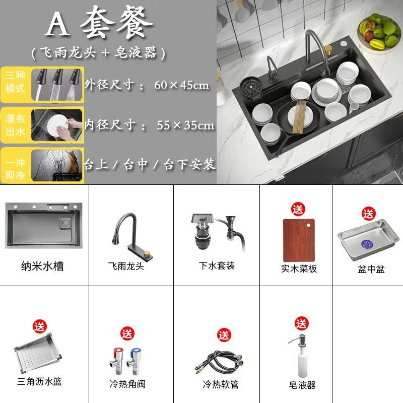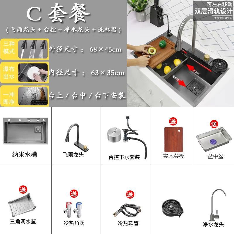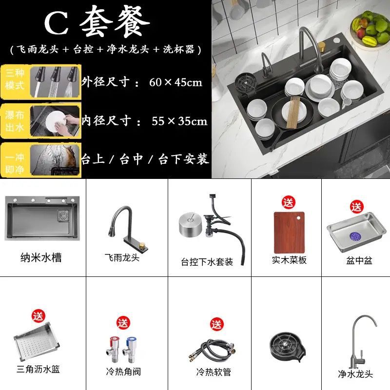 68*45 [feiyu waterfall] extra thick nano black-d package/feiyu faucet + taiwan control +