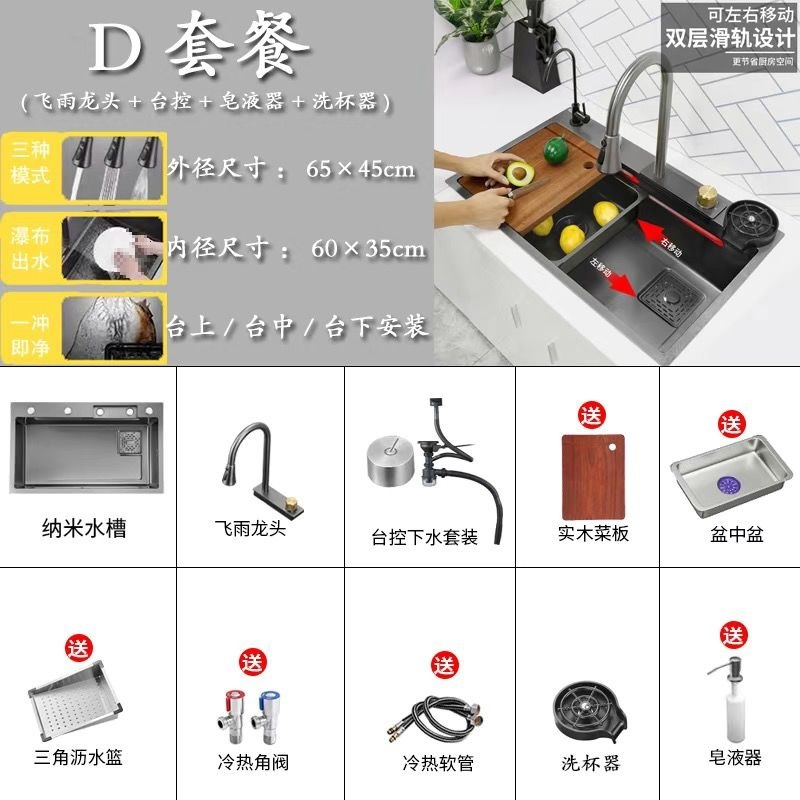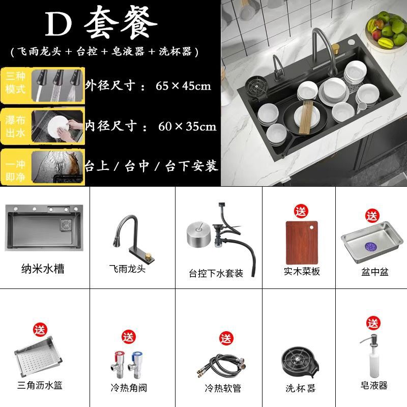 65*45 [feiyu waterfall] extra thick nano black-d package/feiyu faucet + taiwan control +
