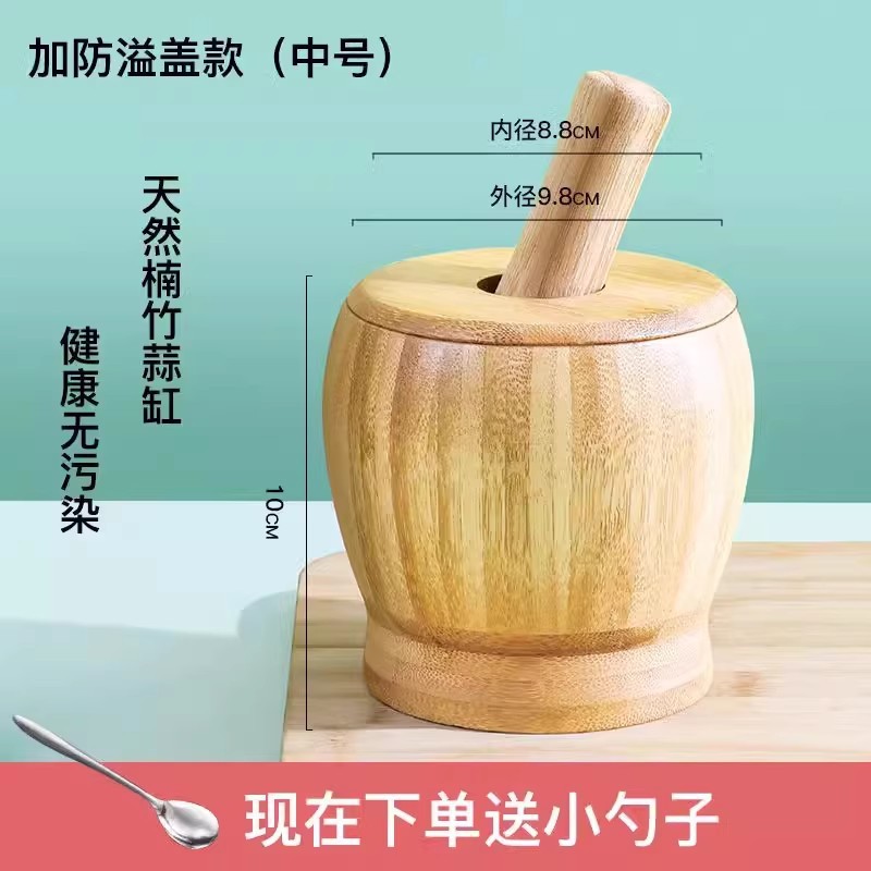 natural bamboo garlic press medium (with spill-proof cover) [spoon for free]].