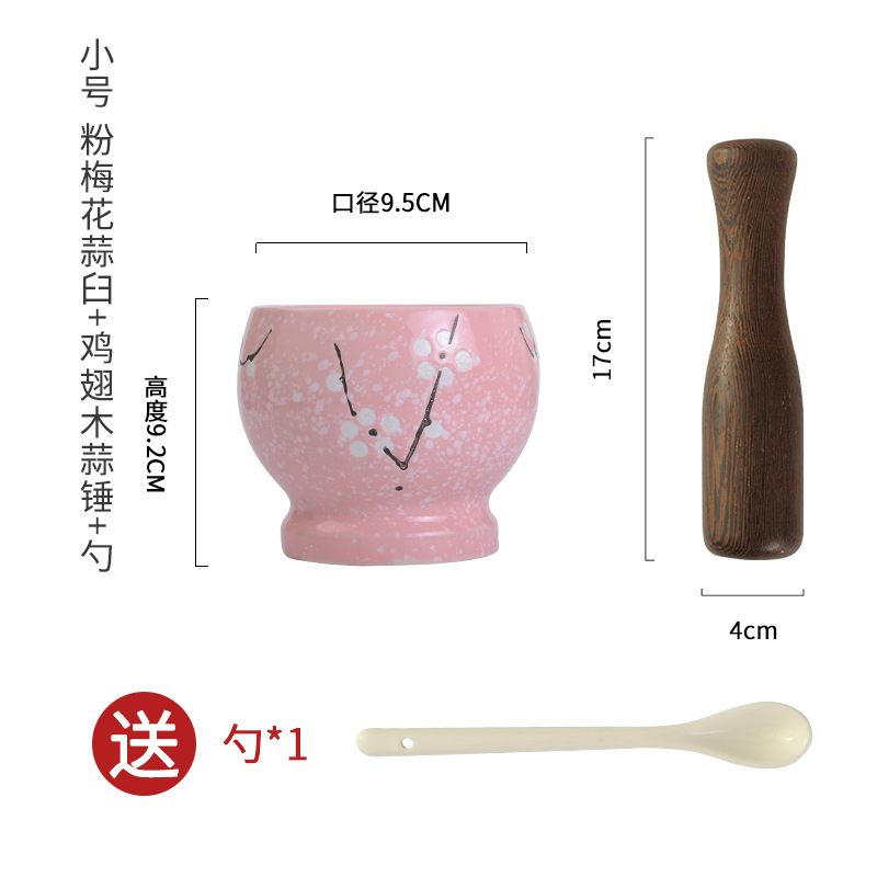 ο ο small size pink plum blossom garlic mortar + door frame garlic hammer get ceramic spoon ο ο ο
