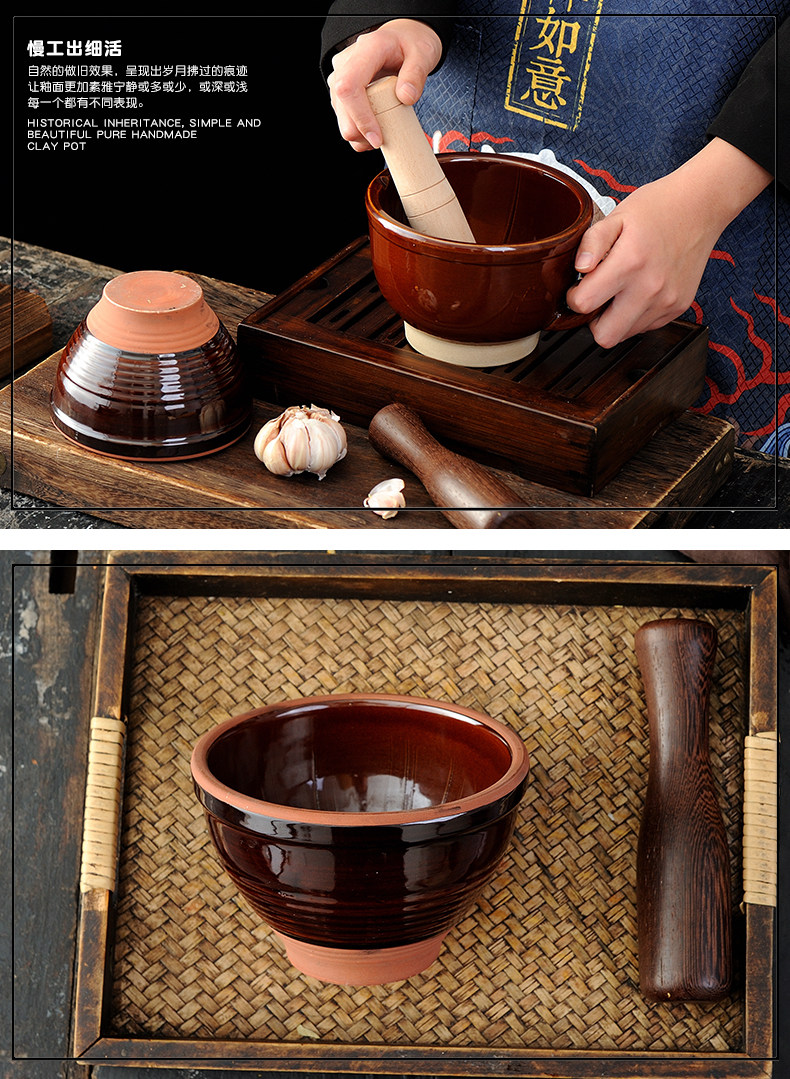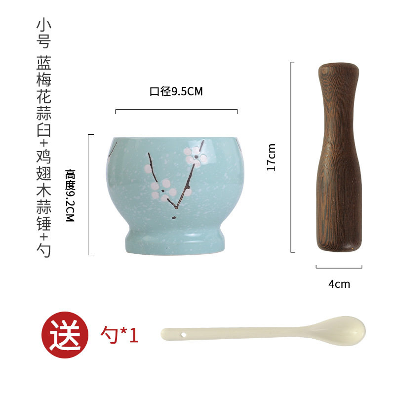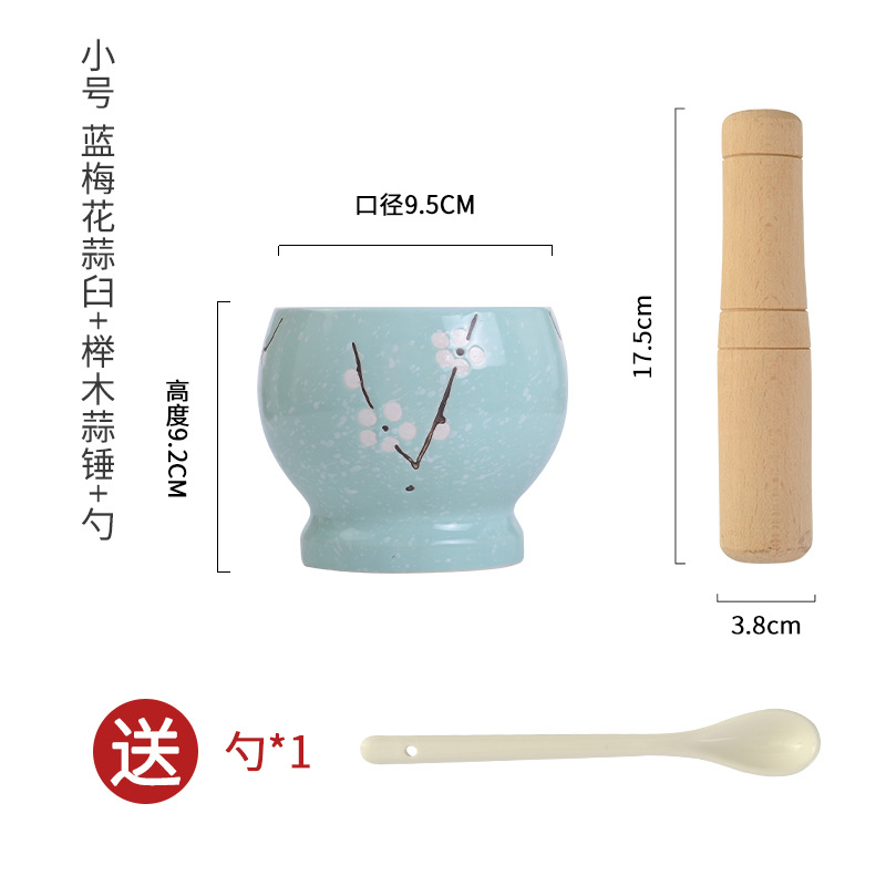 ο ο ο small size blue plum blossom garlic mortar + beech garlic hammer get ceramic spoon ο ο ο