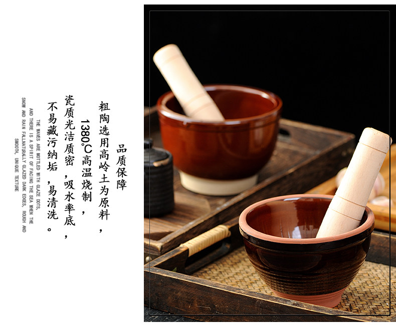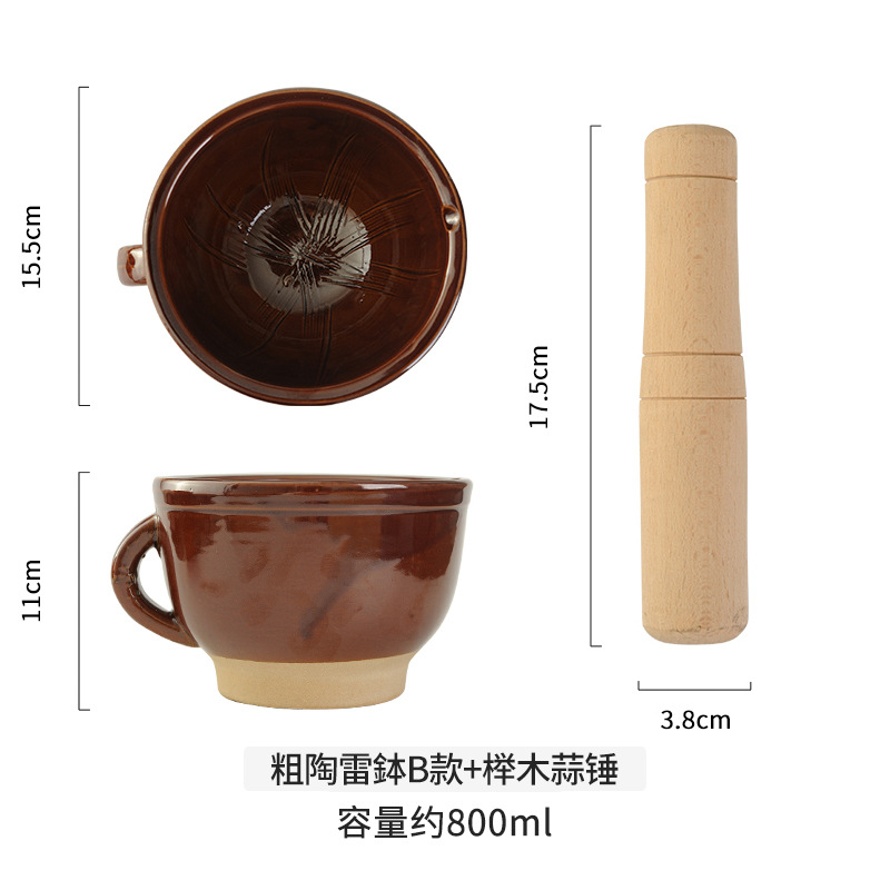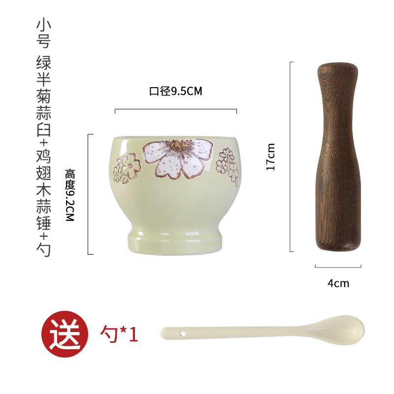 small size green half chrysanthemum garlic mortar + beech garlic hammer get ceramic spoon free