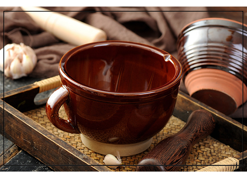ο ο ο small size pink half chrysanthemum garlic mortar + beech garlic hammer get ceramic spoon ο ο ο