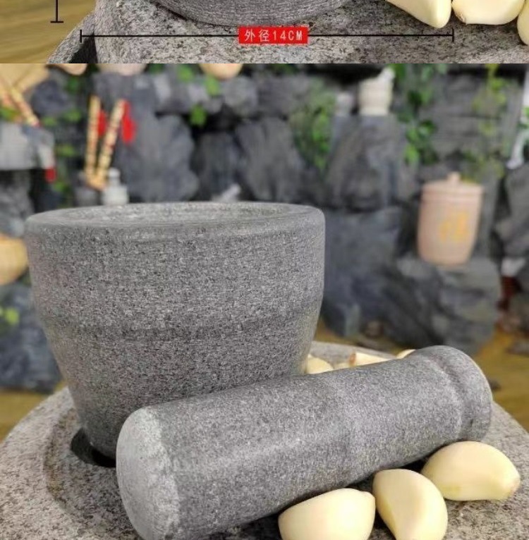 large polished black bluestone stone mortar [manual polishing]-c33