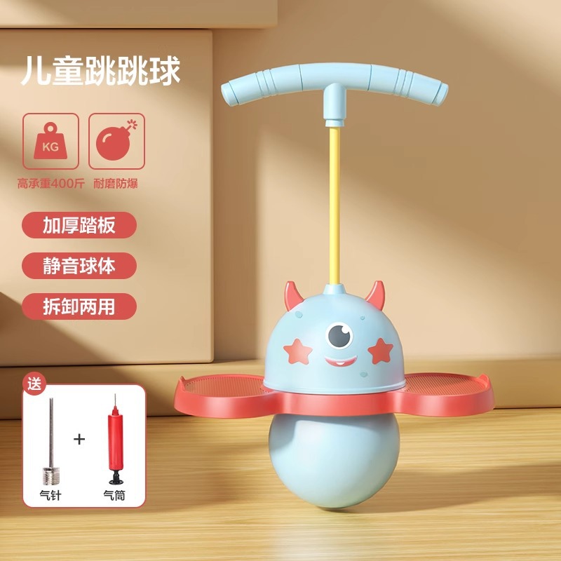 ox horn little devil children bouncing ball-blue [get tire pump + inflation needle for free]]