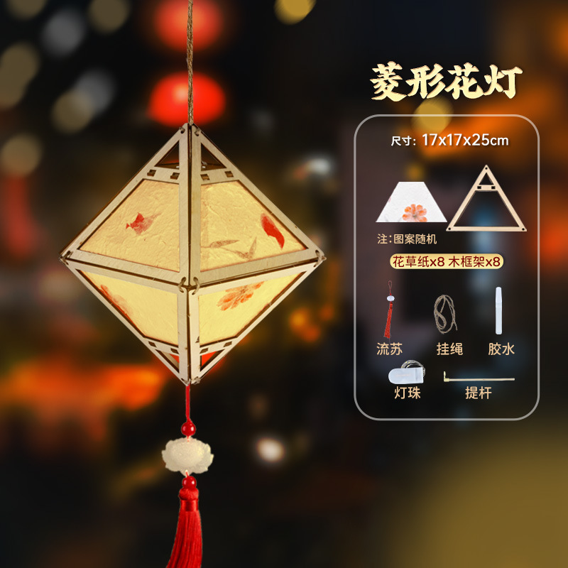 diamond festive lantern (high quality wooden frame flower paper)