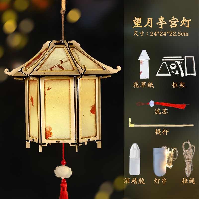 changji moon festive lantern (high quality wooden frame flower paper)