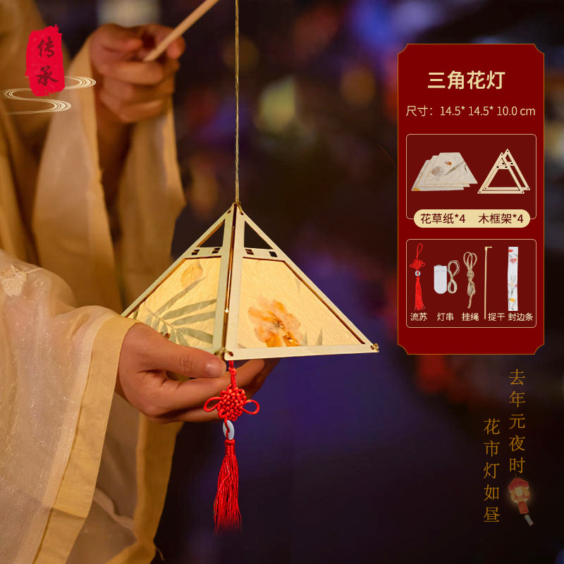 triangle festive lantern (high quality wooden frame flower paper)