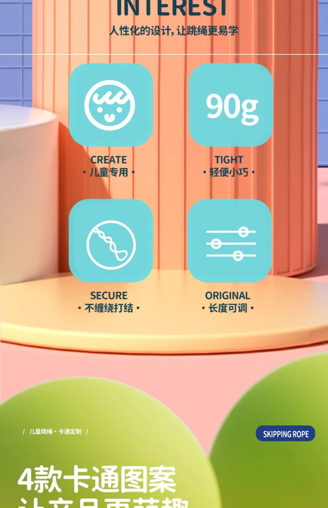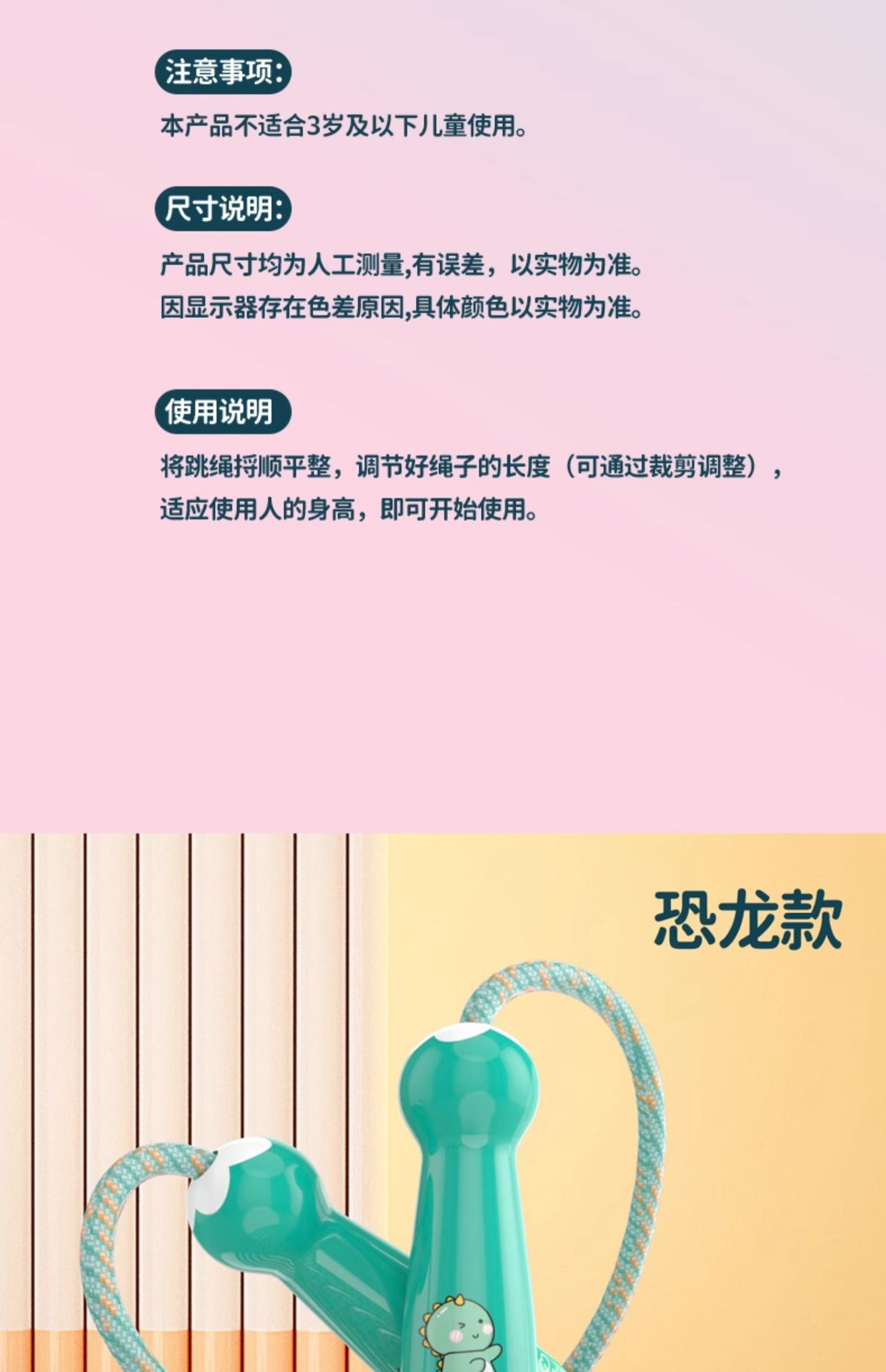 dinosaur skipping rope green bag 97g (rope length 2.6 m)