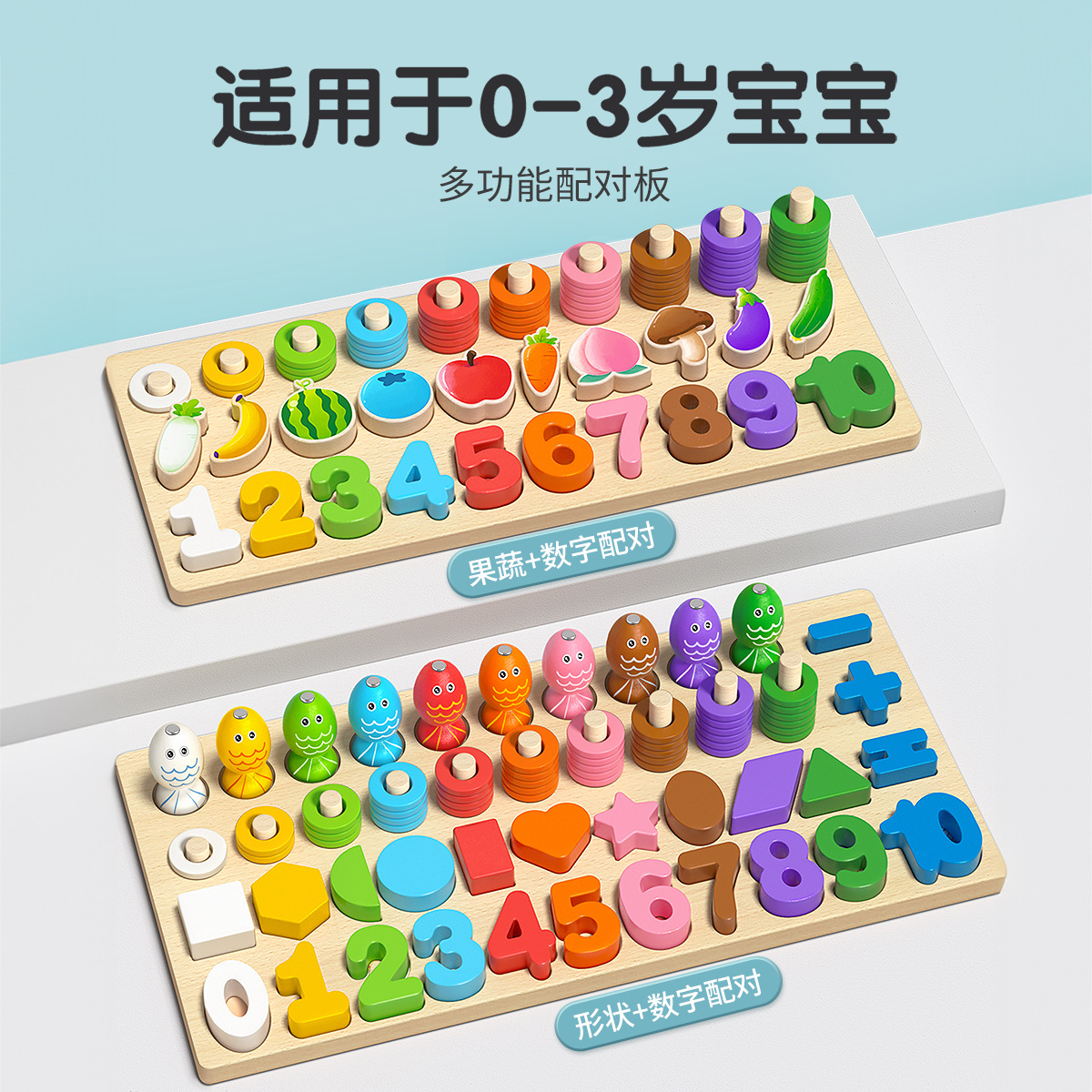 six-in-one matching board (number + fruit and vegetable + fishing + ferrule + calculation)