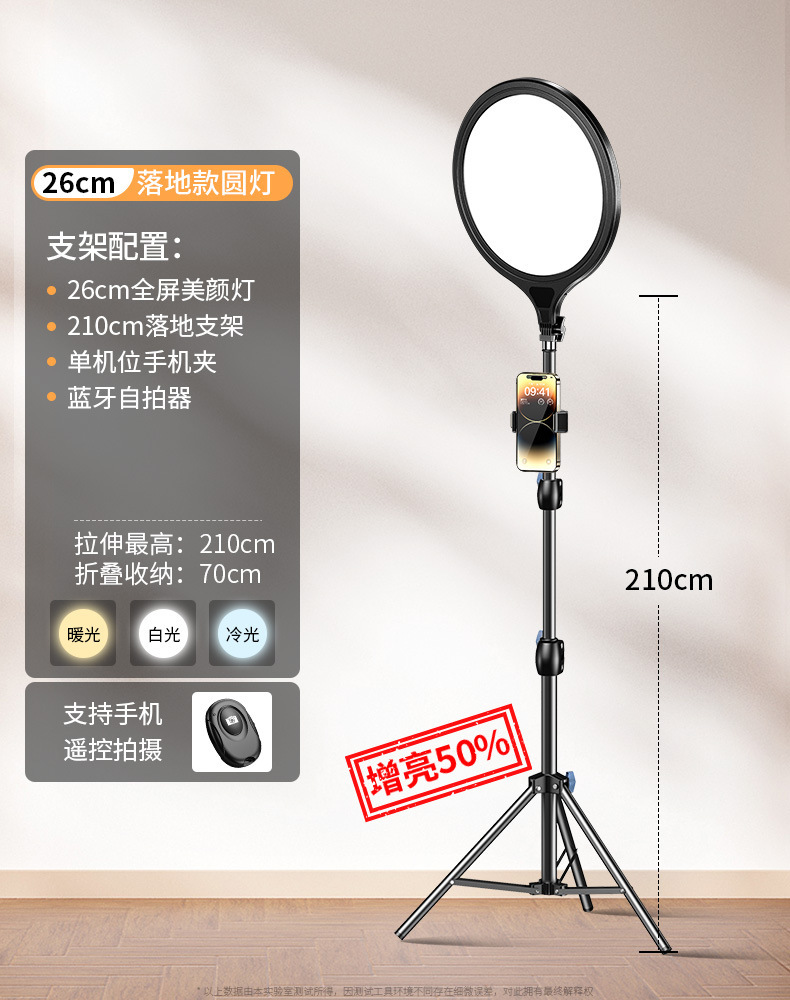 [26cm floor fill light + remote control + rack with horizontal arm] + [26cm desktop fill light