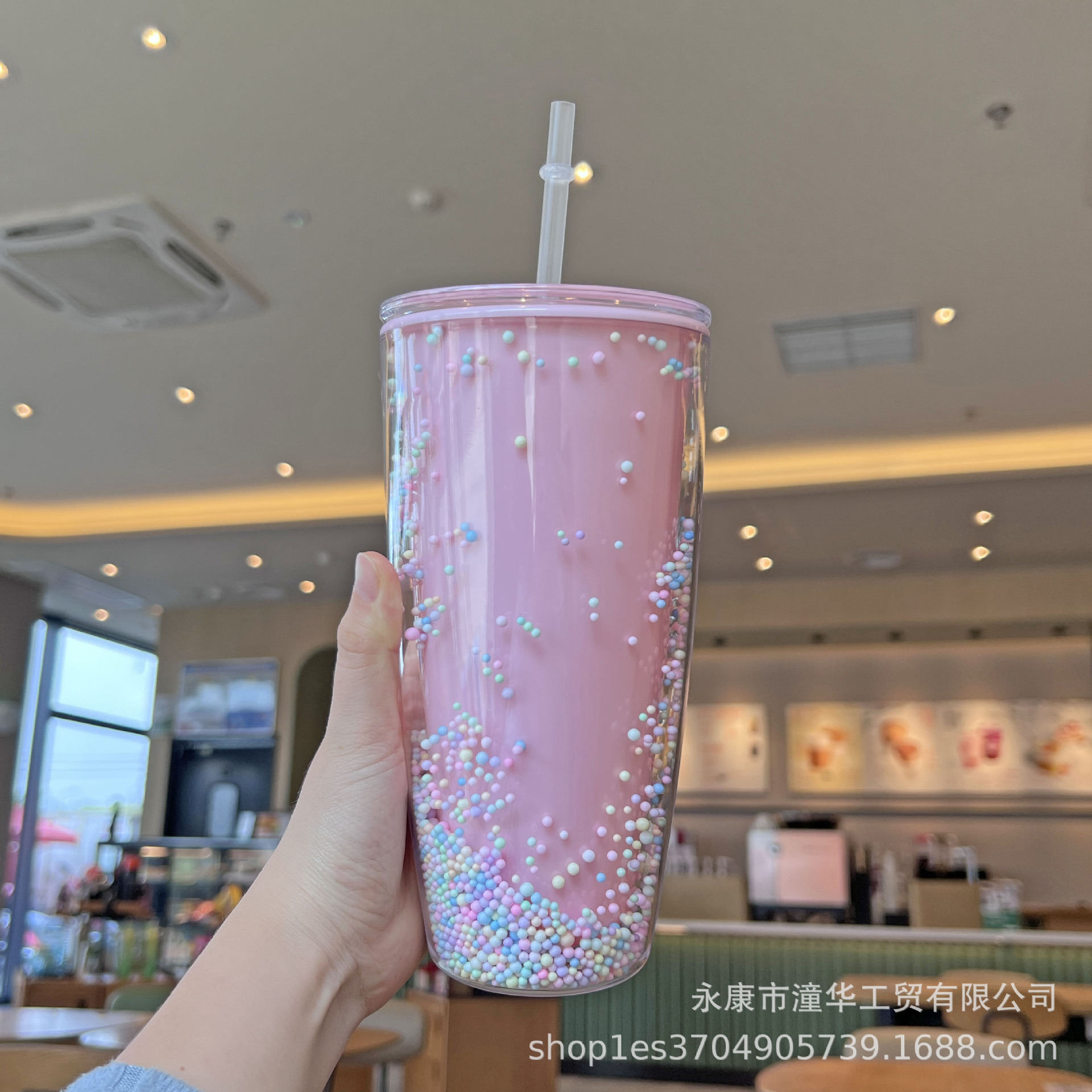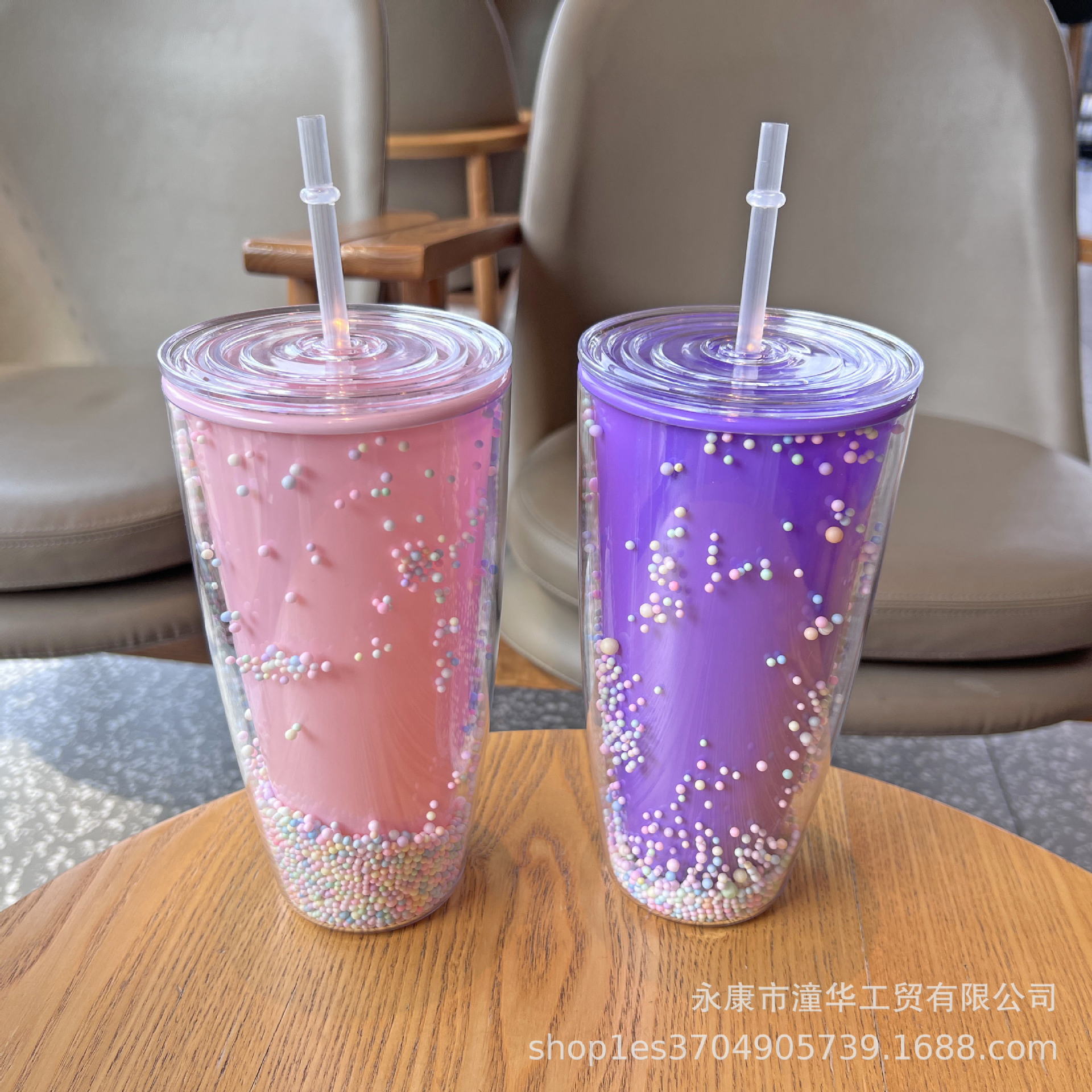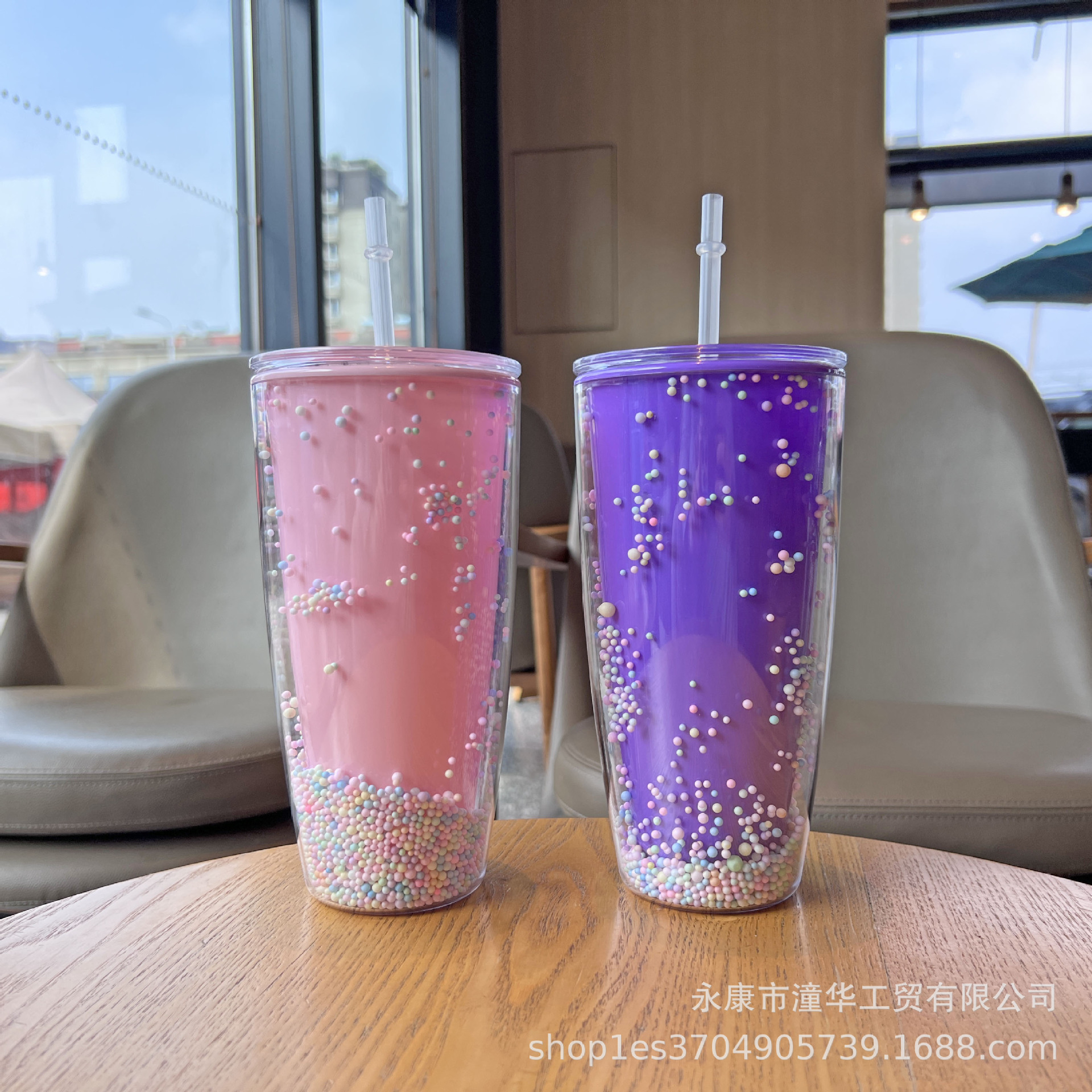 foreign trade new plastic cup double-layer large capacity macaron water cup good-looking internet celebrity cup with straw creative goddess cup