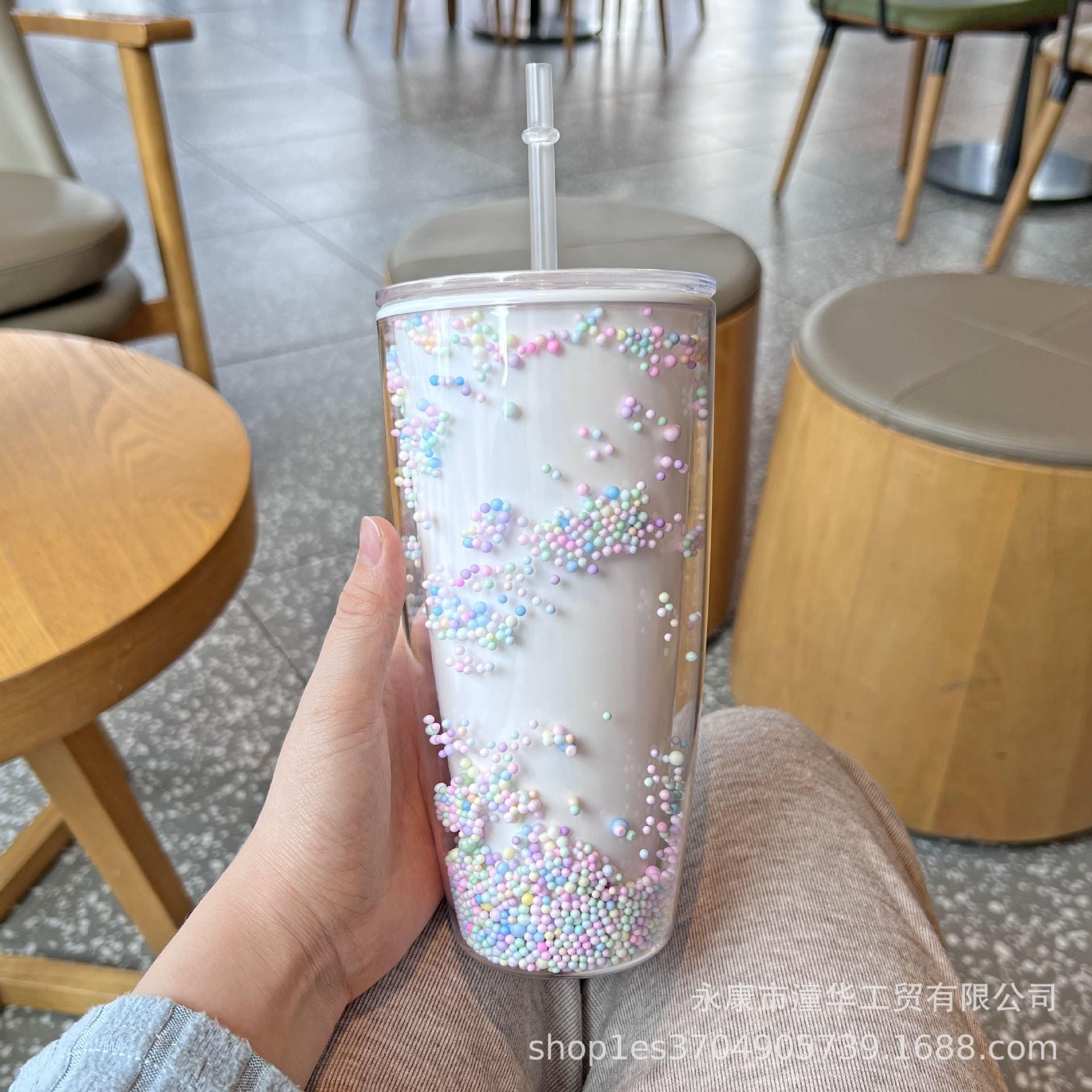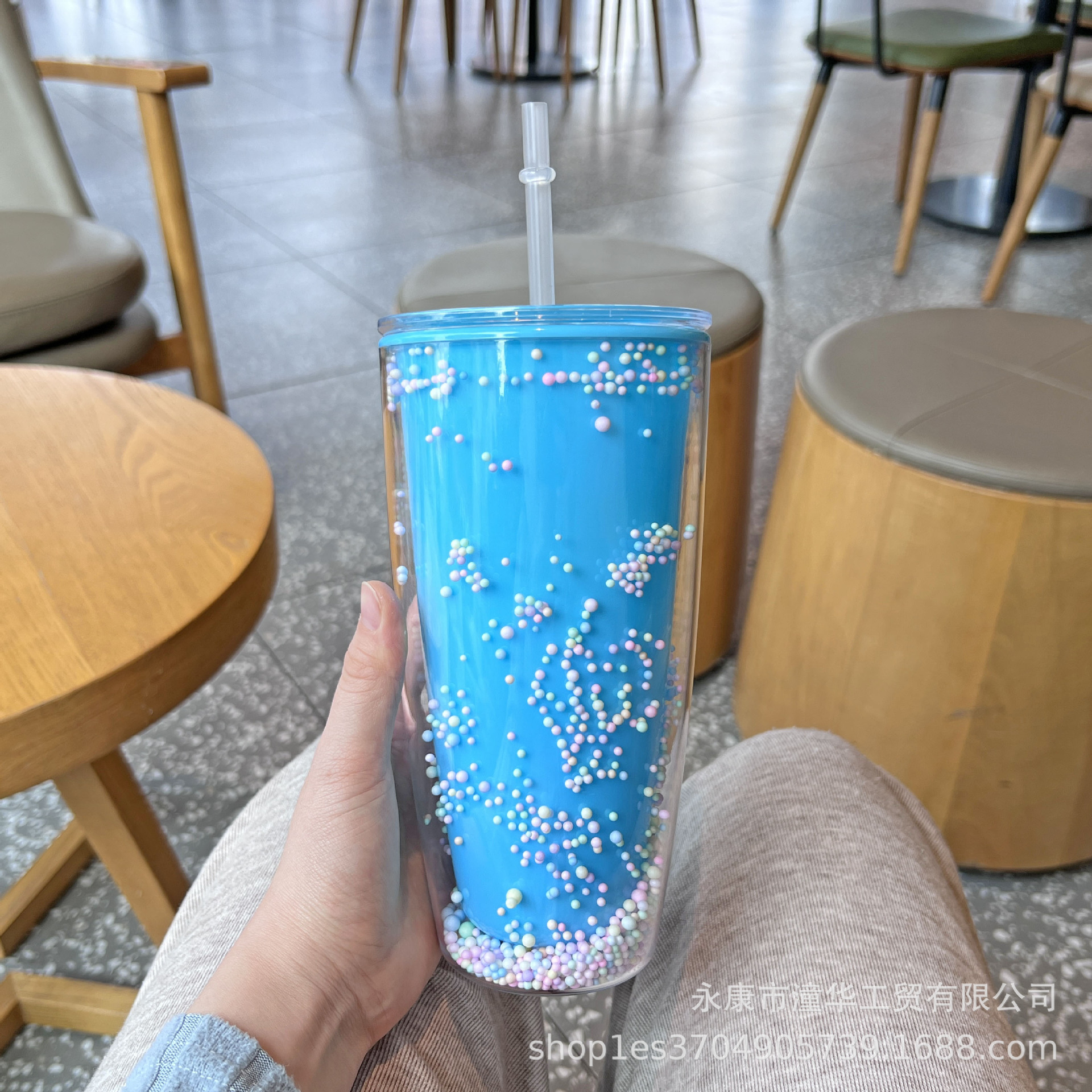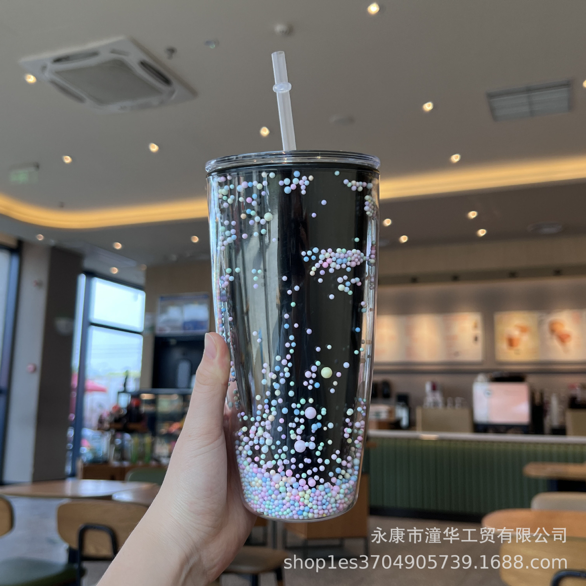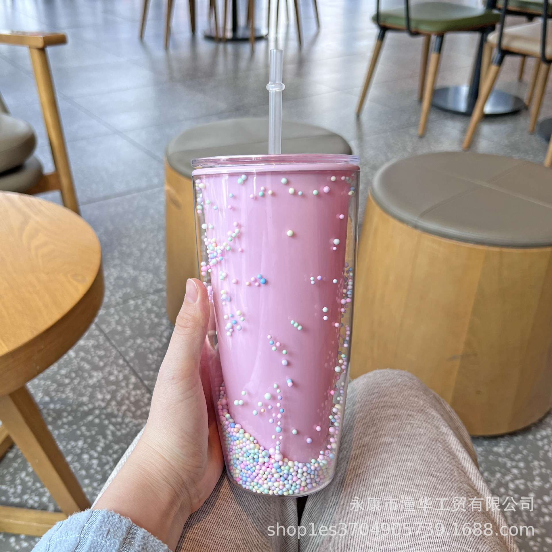 foreign trade new plastic cup double-layer large capacity macaron water cup good-looking internet celebrity cup with straw creative goddess cup
