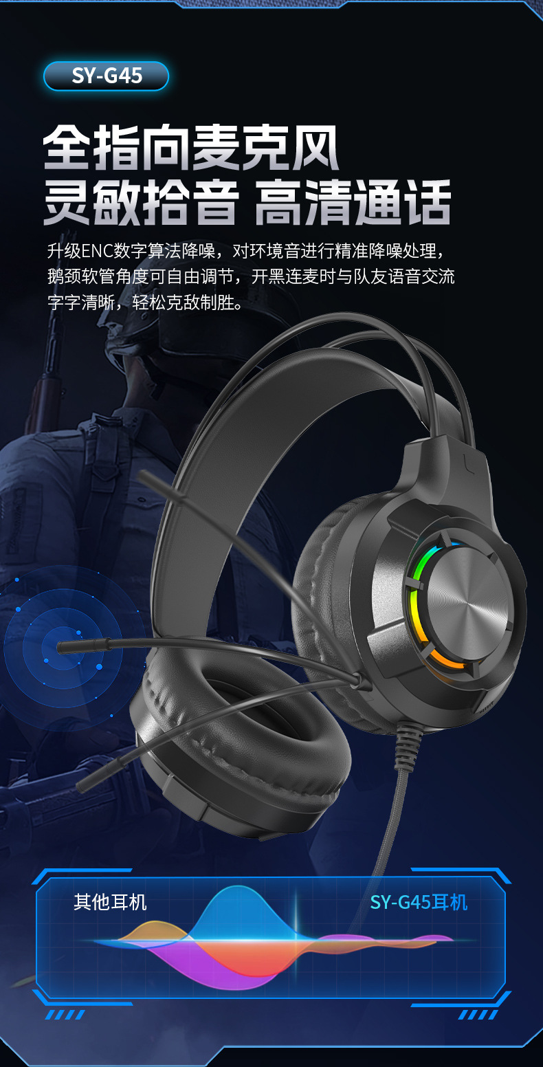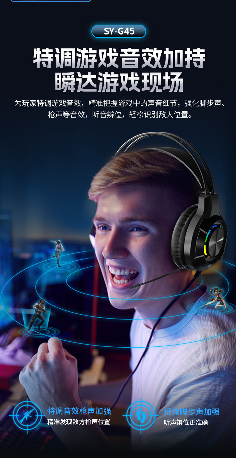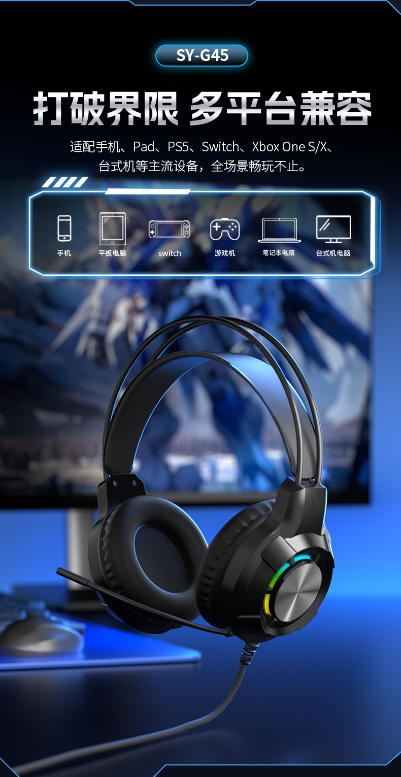g45 black ps5 light-emitting headset with packaging (with free one divided into two cable)
