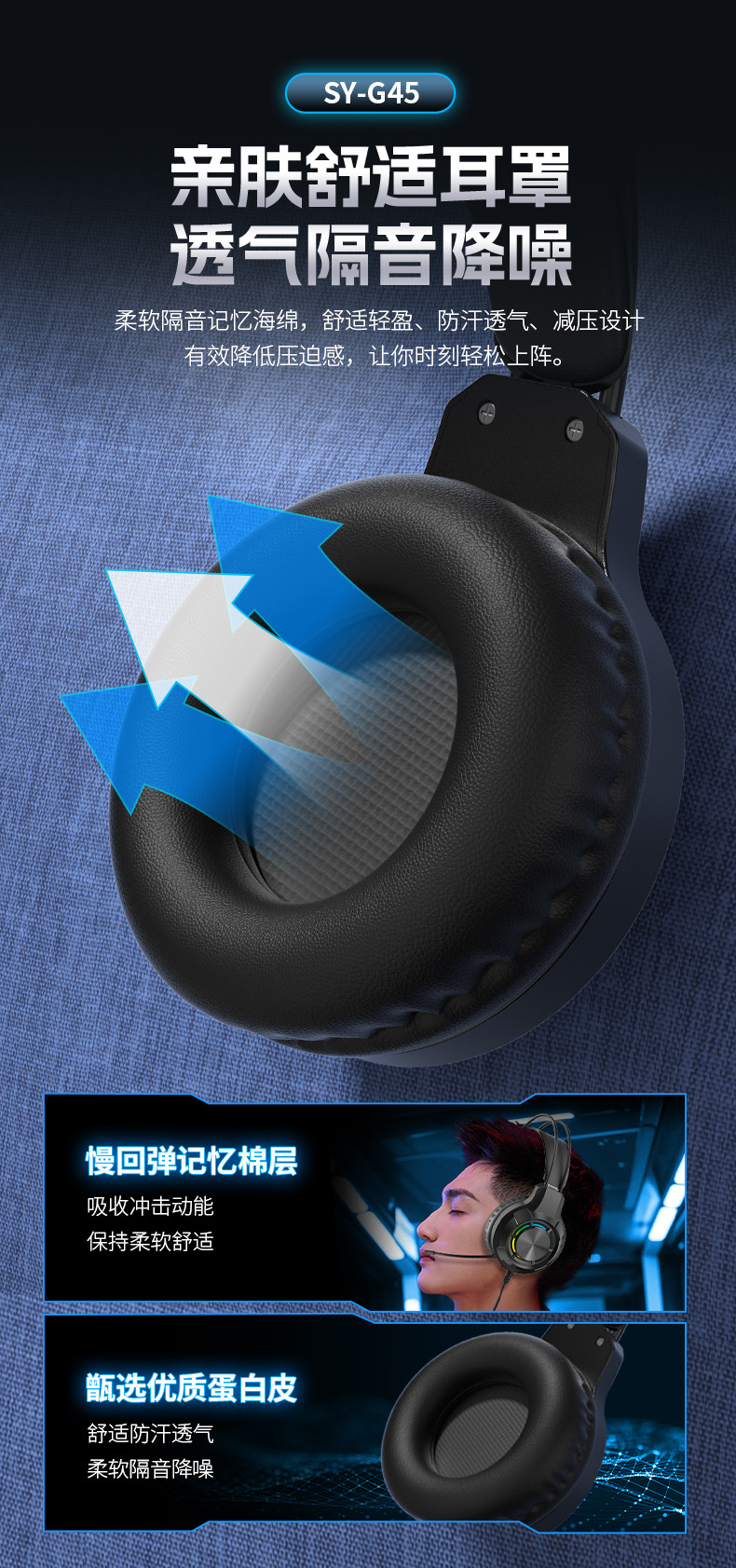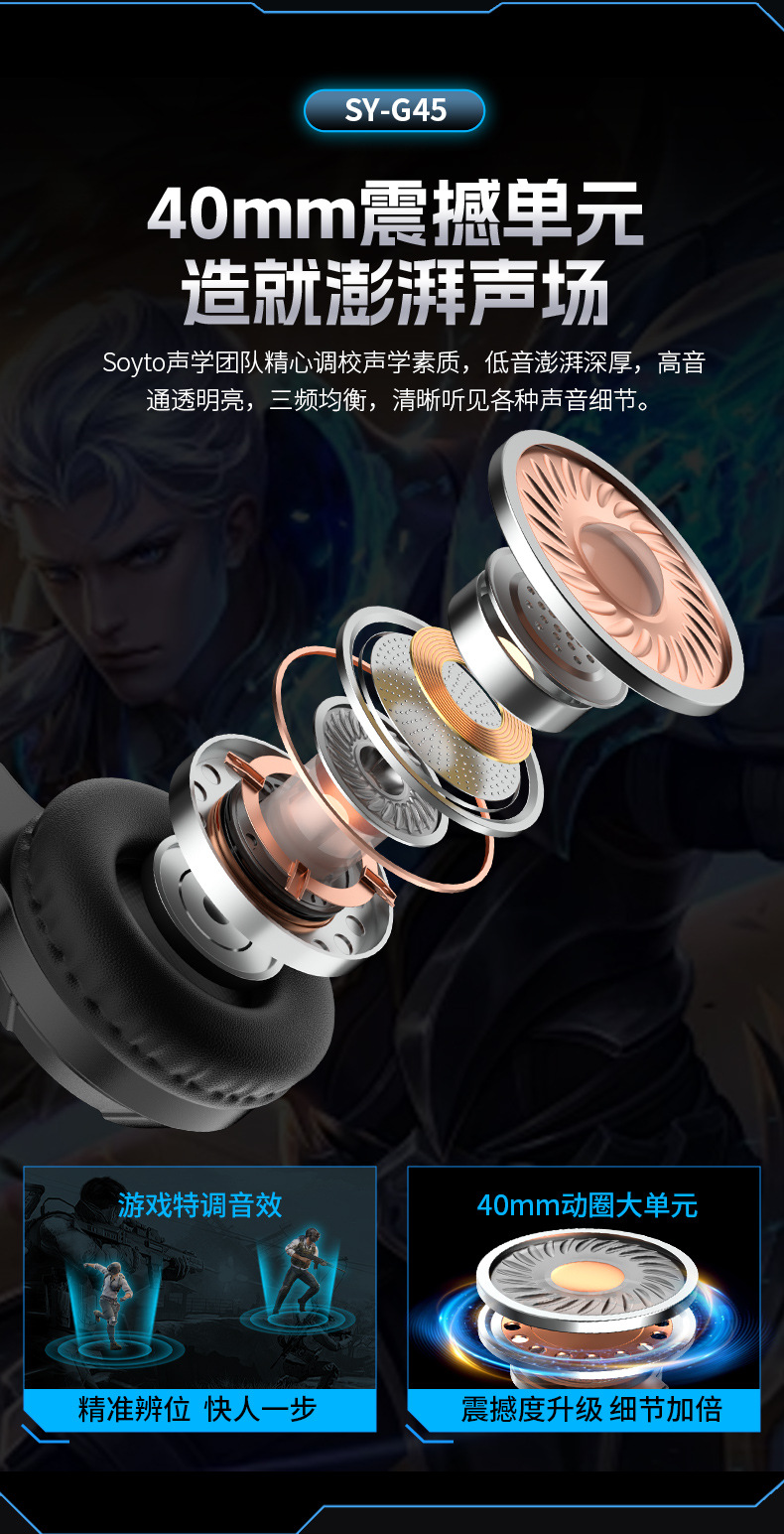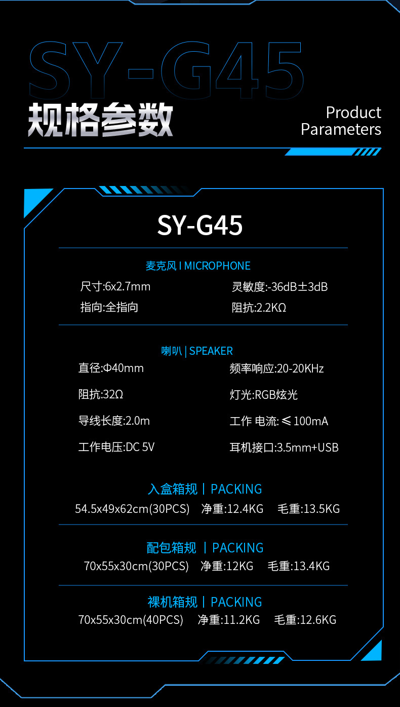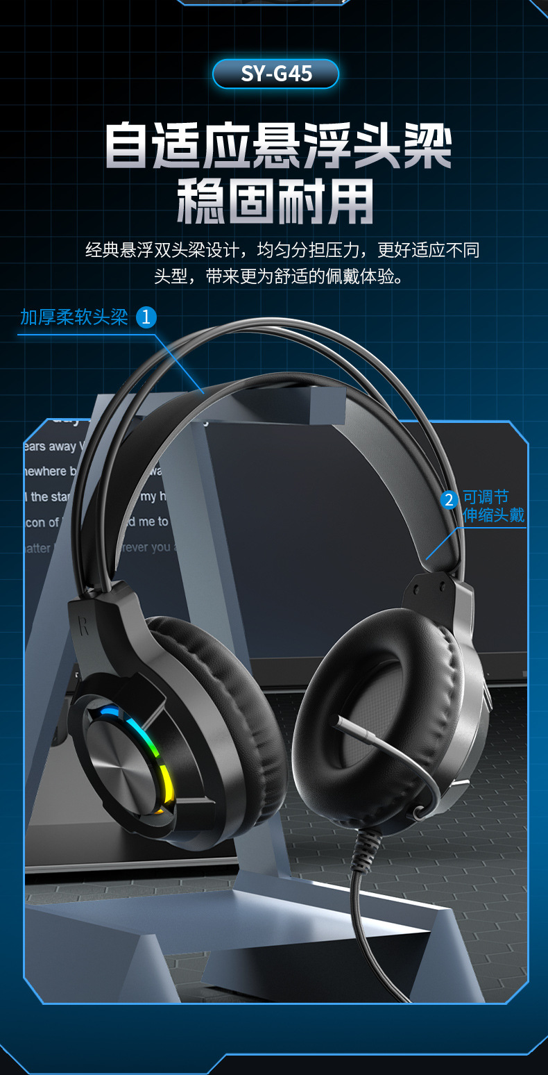 g45 black ps5 light-emitting headset with packaging (with free one divided into two cable)