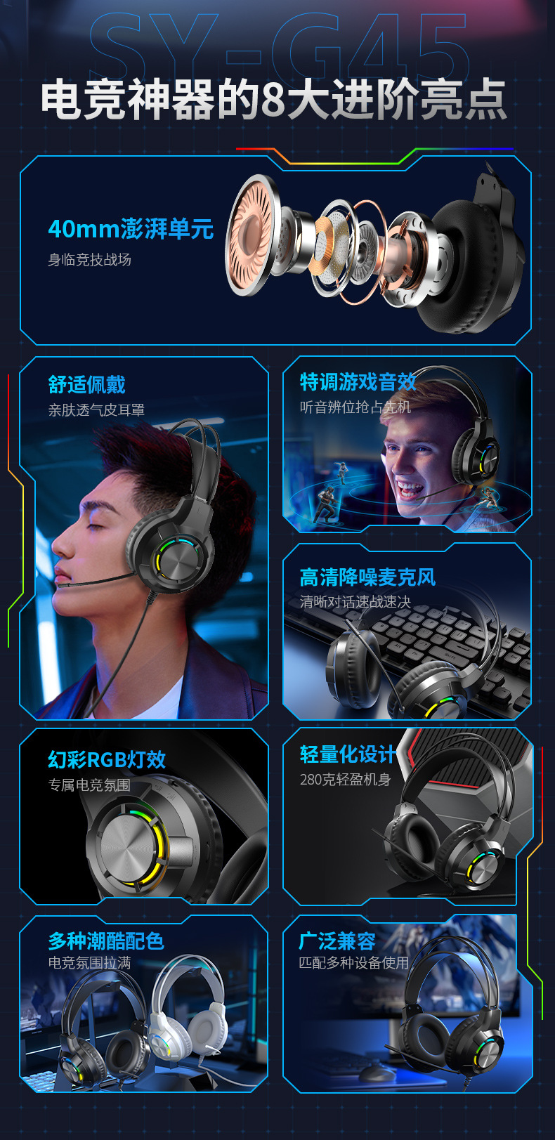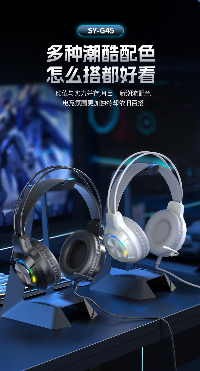 g45 white ps5 light-emitting headset with packaging (with free one divided into two cable)