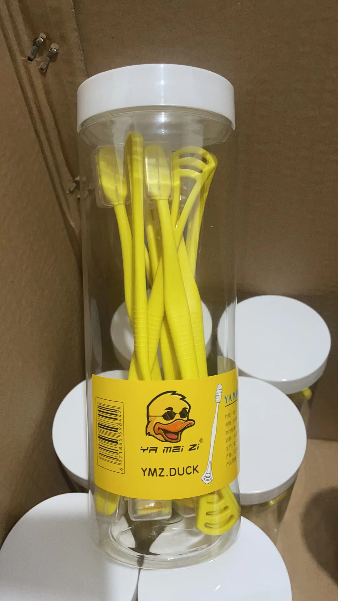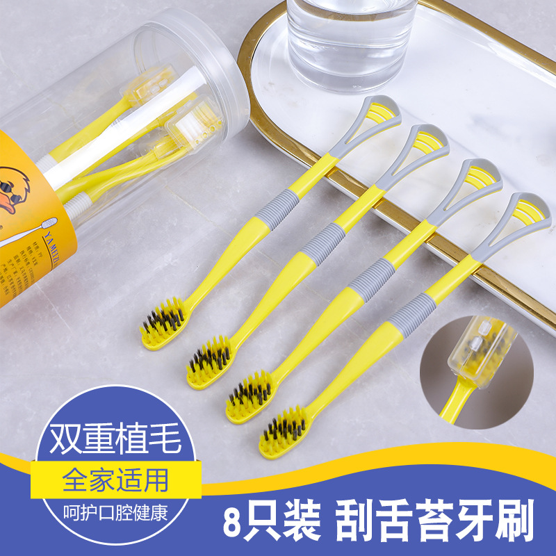 small yellow duck tongue scraping toothbrush (1 barrel 8 pcs) plastic ordinary
