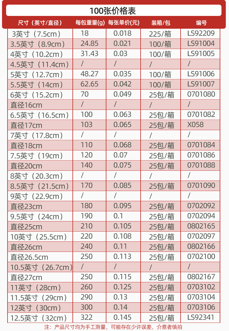 | 16cm diameter per pack | CN¥ 16.47 | 99993 piece available |
