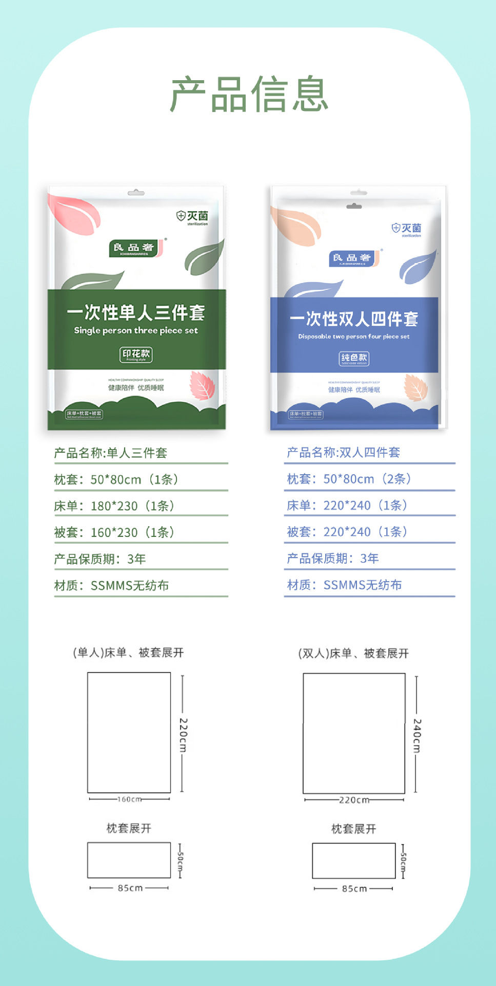 solid color one-time double-bed four-piece suit 2 packs