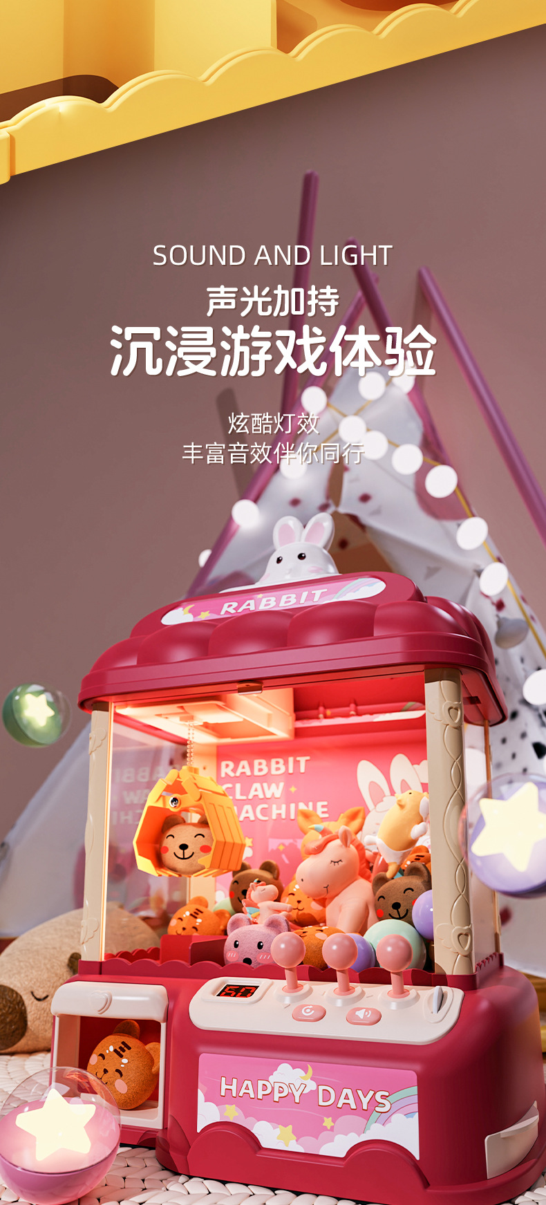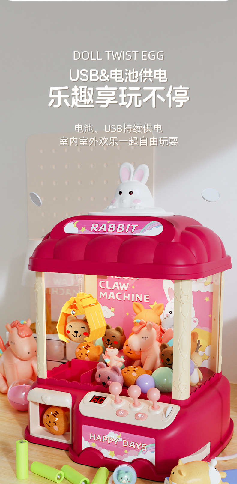 rabbit crane machine 10 dolls +10 capsule toy +24 coins