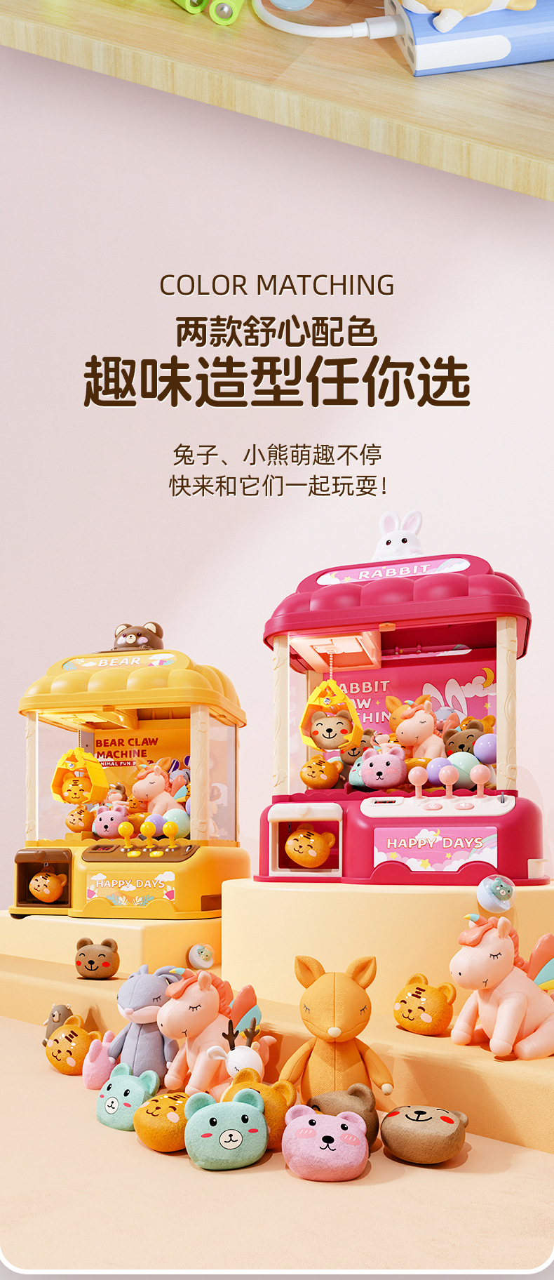 bear crane machine (yellow) 10 doll +10 capsule toy