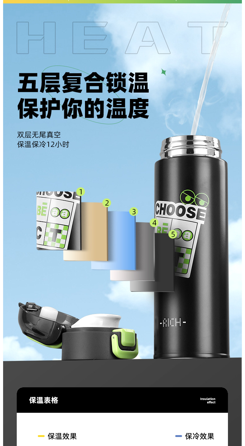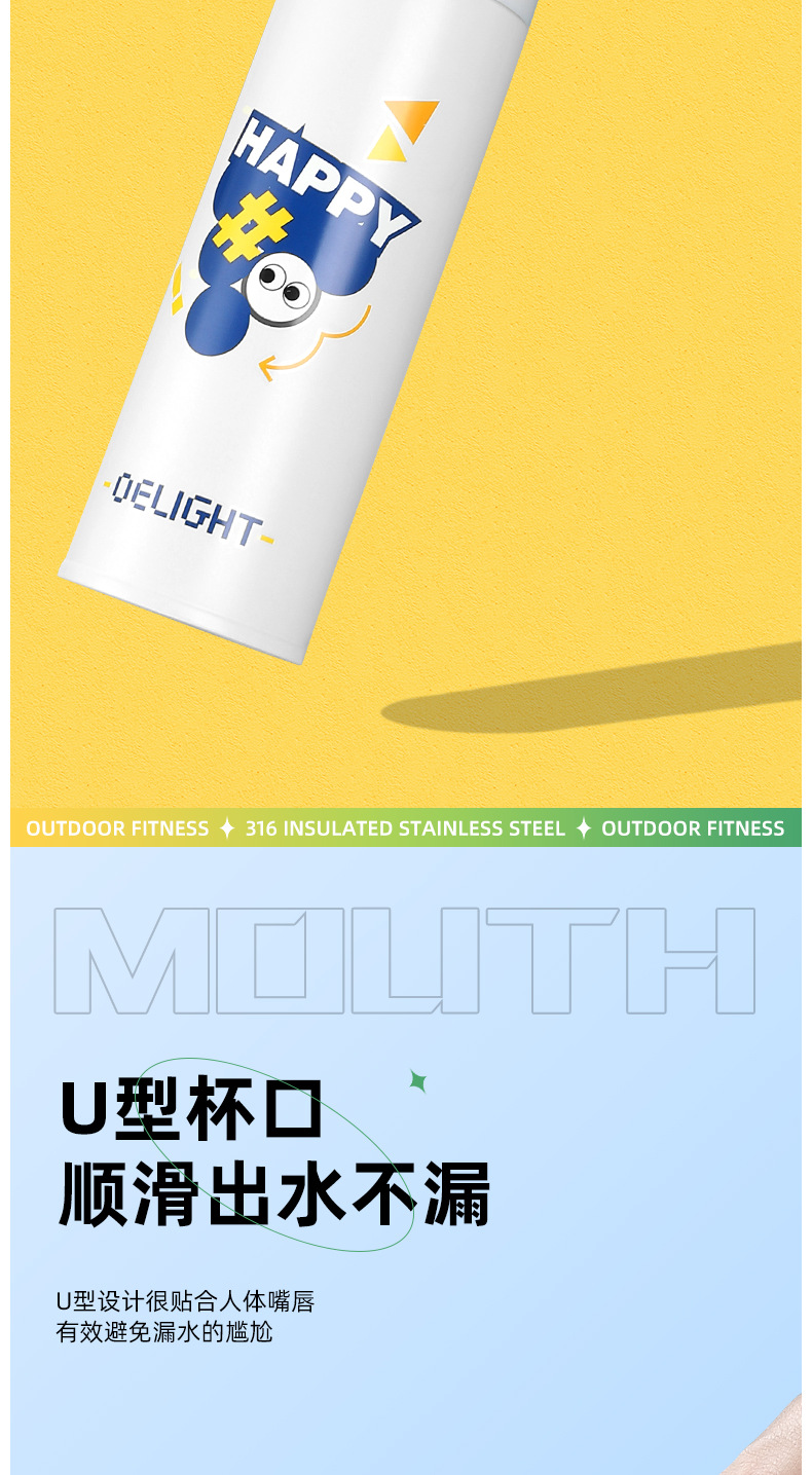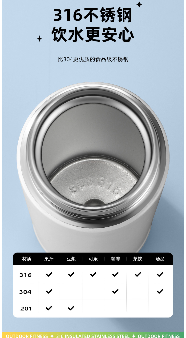 vacuum cup food grade stainless steel portable fashion water cup ins student cup bouncing vacuum cup factory direct sales