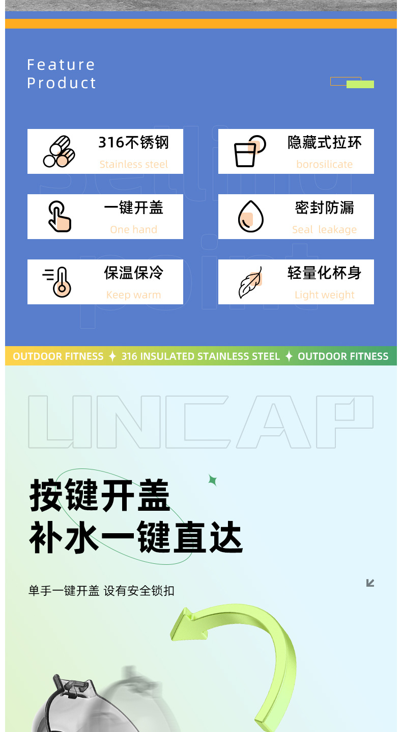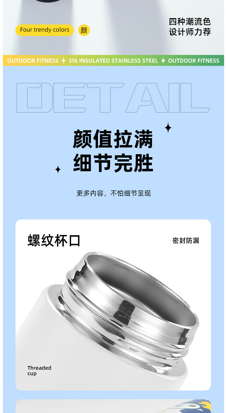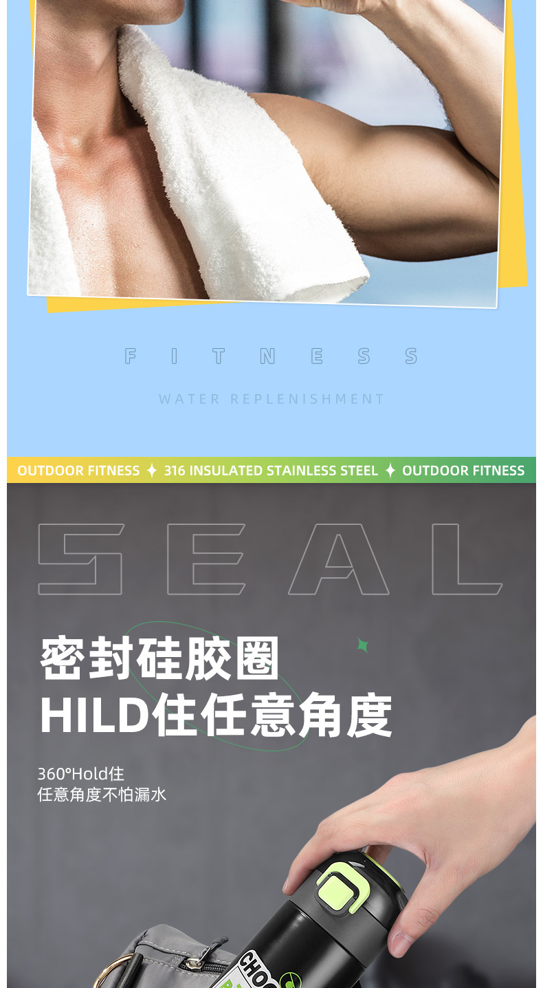 vacuum cup food grade stainless steel portable fashion water cup ins student cup bouncing vacuum cup factory direct sales