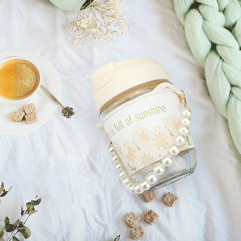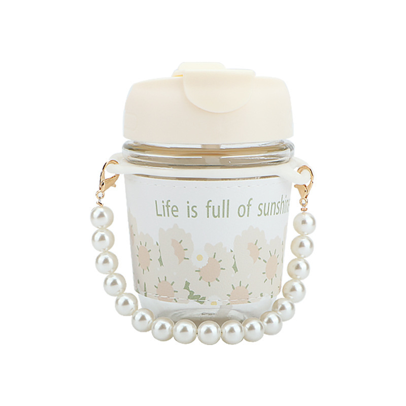 wholesale internet celebrity ins style good-looking pearl chain water cup glass water cup small fresh portable cup with straw