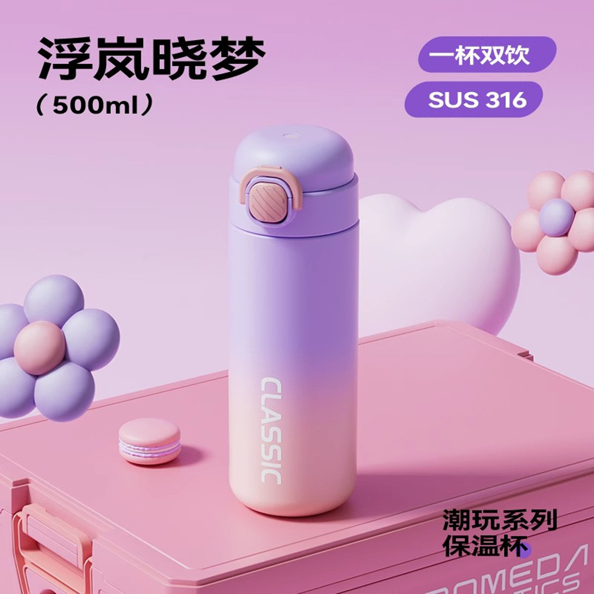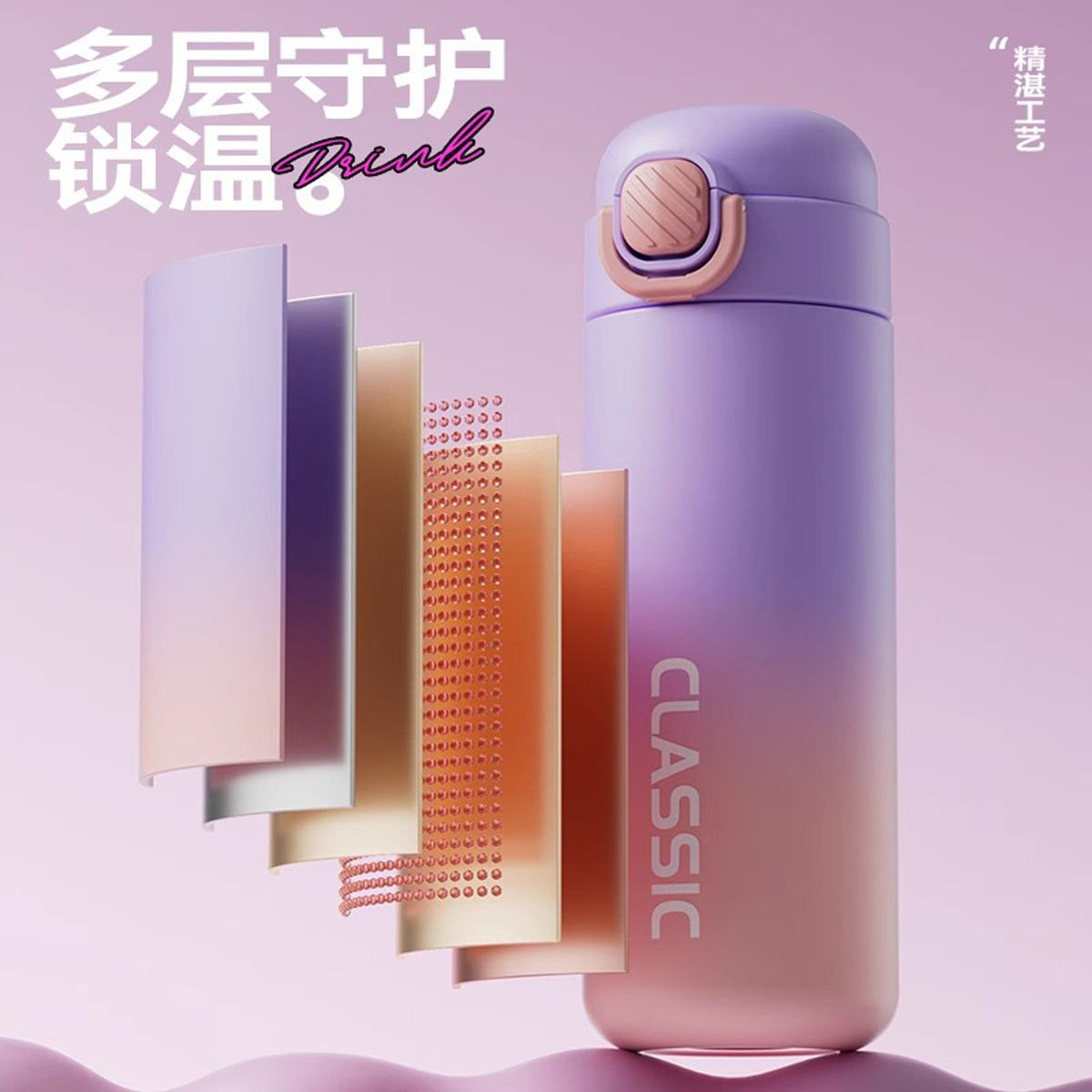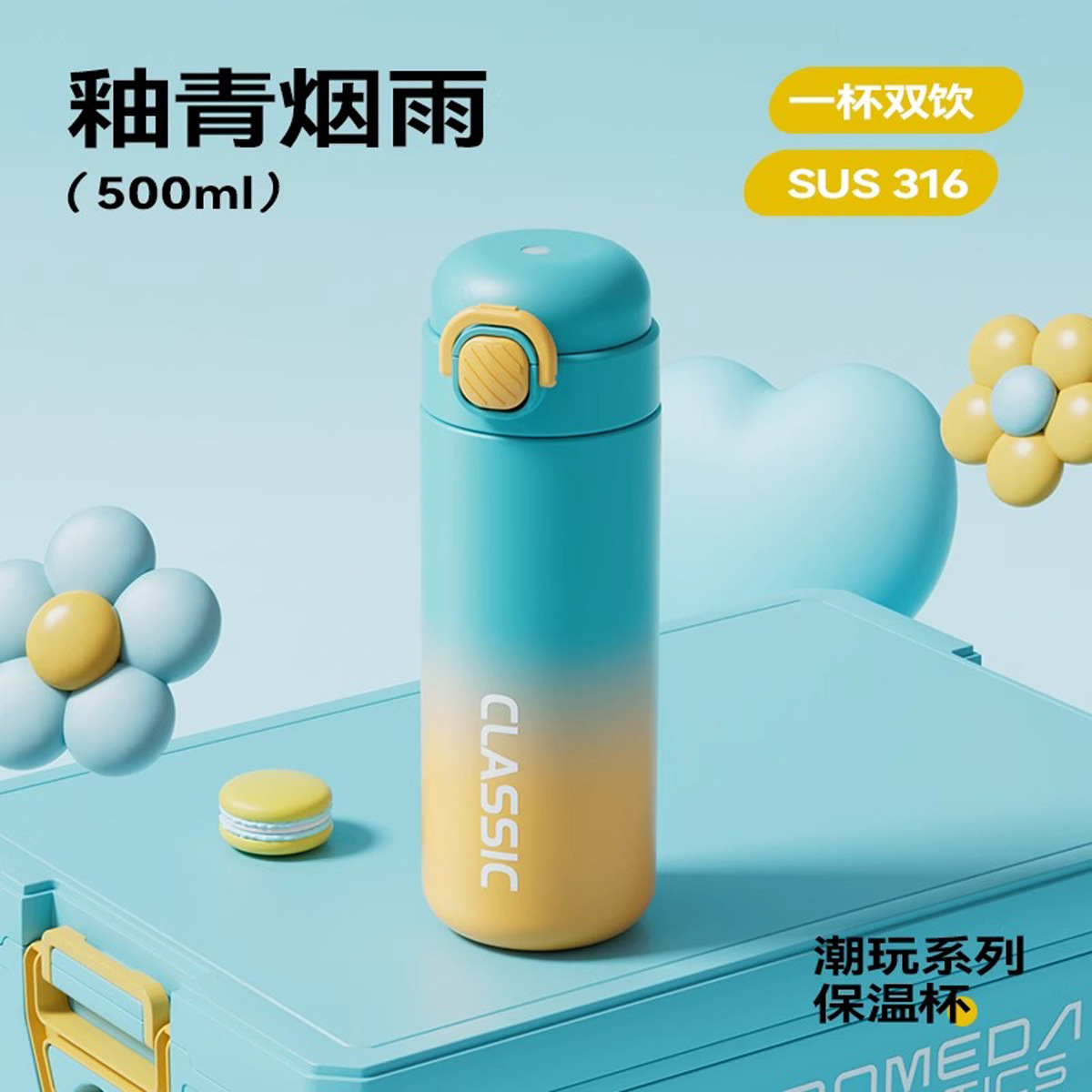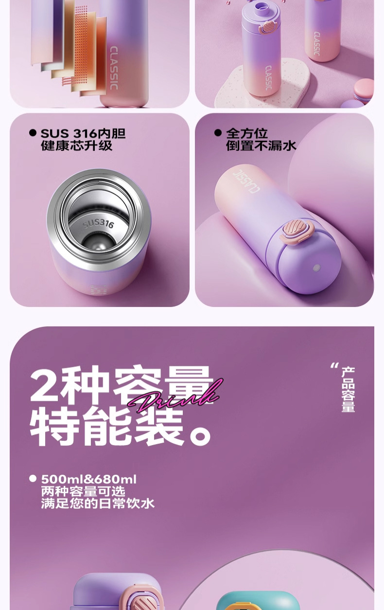 color gradient radient thermos cup female good-looking student double drink cup children's cups school cup male portable sports bottle