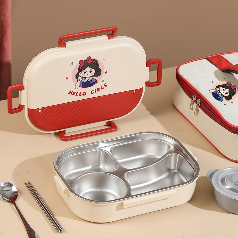 girl 4 grid 1550ml + chopstick and spoon + soup bowl + bag