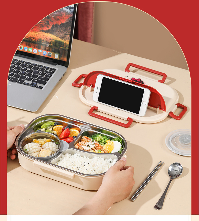 girl's 4 grid 1550ml + chopstick and spoon + soup bowl