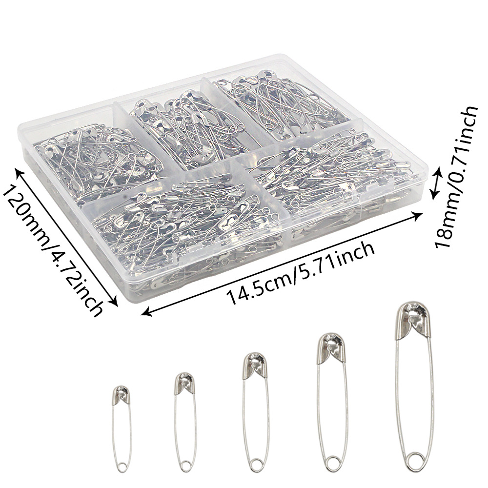 factory supply 380 pieces 5 sizes silver nickel plated pin suit flat five grid box clothing diy fixed accessories