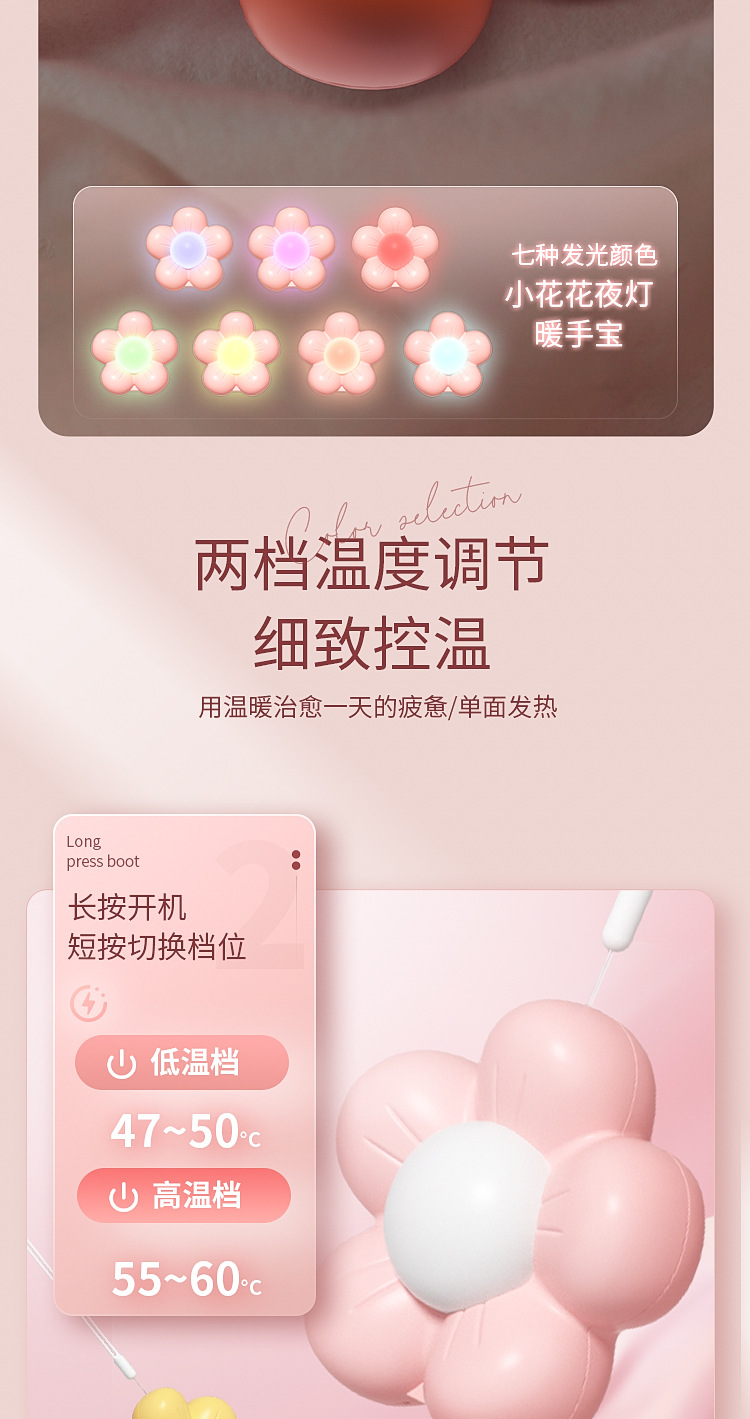 45°C 和 55°C两档调温,取暖不烫手;