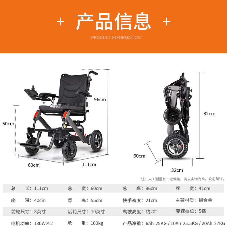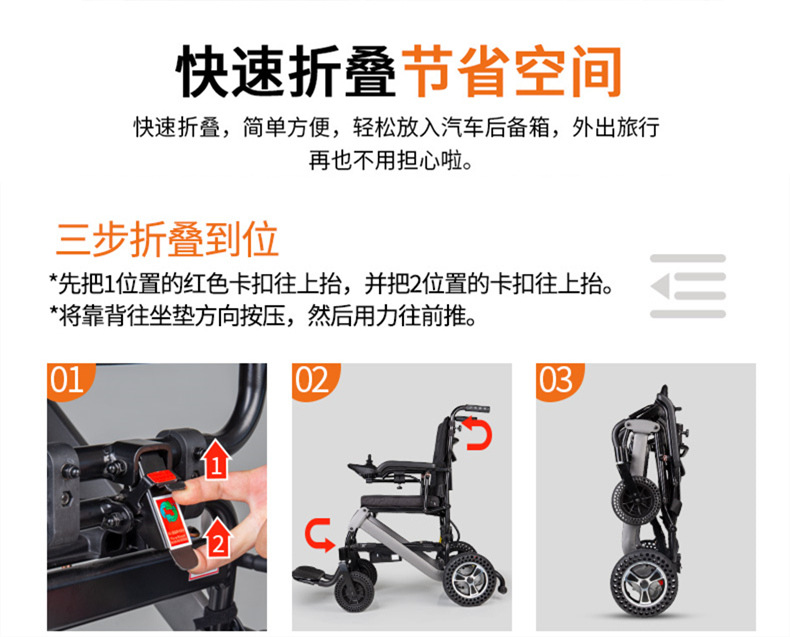 electric wheelchair aluminum alloy foldable and portable lightweight scooter can get on the plane lithium medical equipment medical supplies
