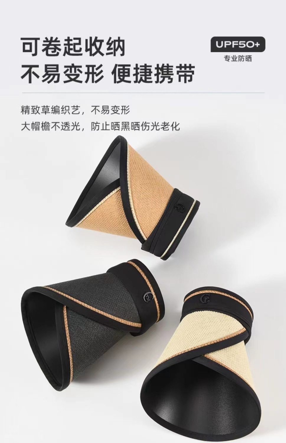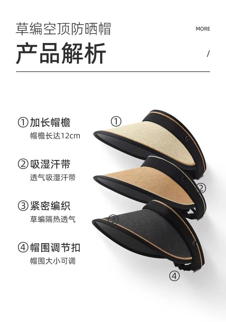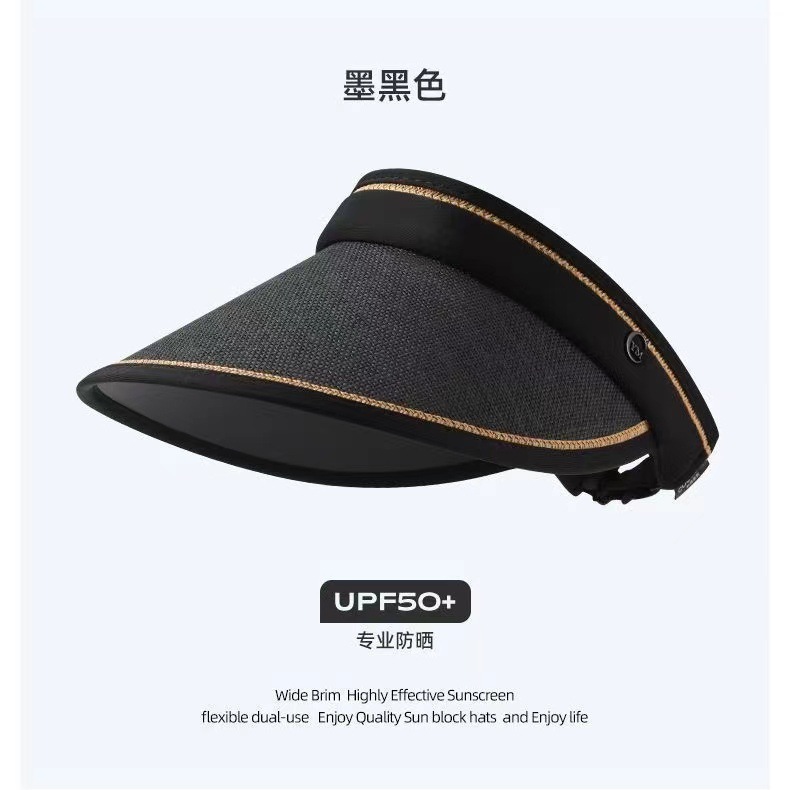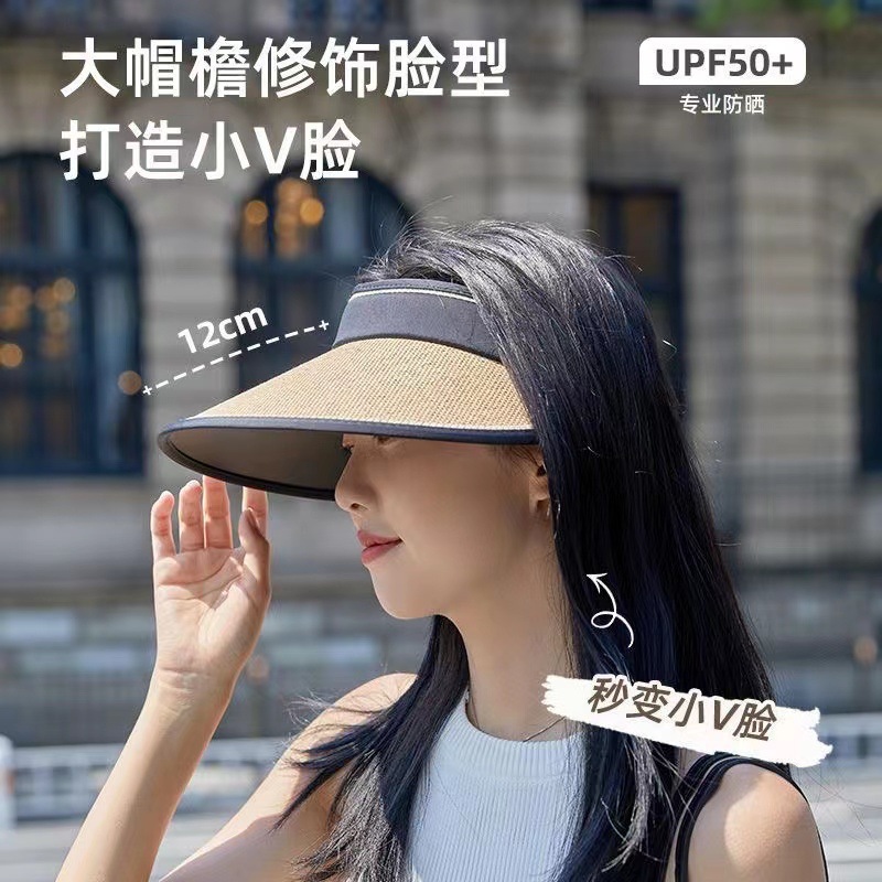 summer sun protection sun hat air top internet celebrity upgraded uv protection sun protection black glue big brim double-layer woven straw hat