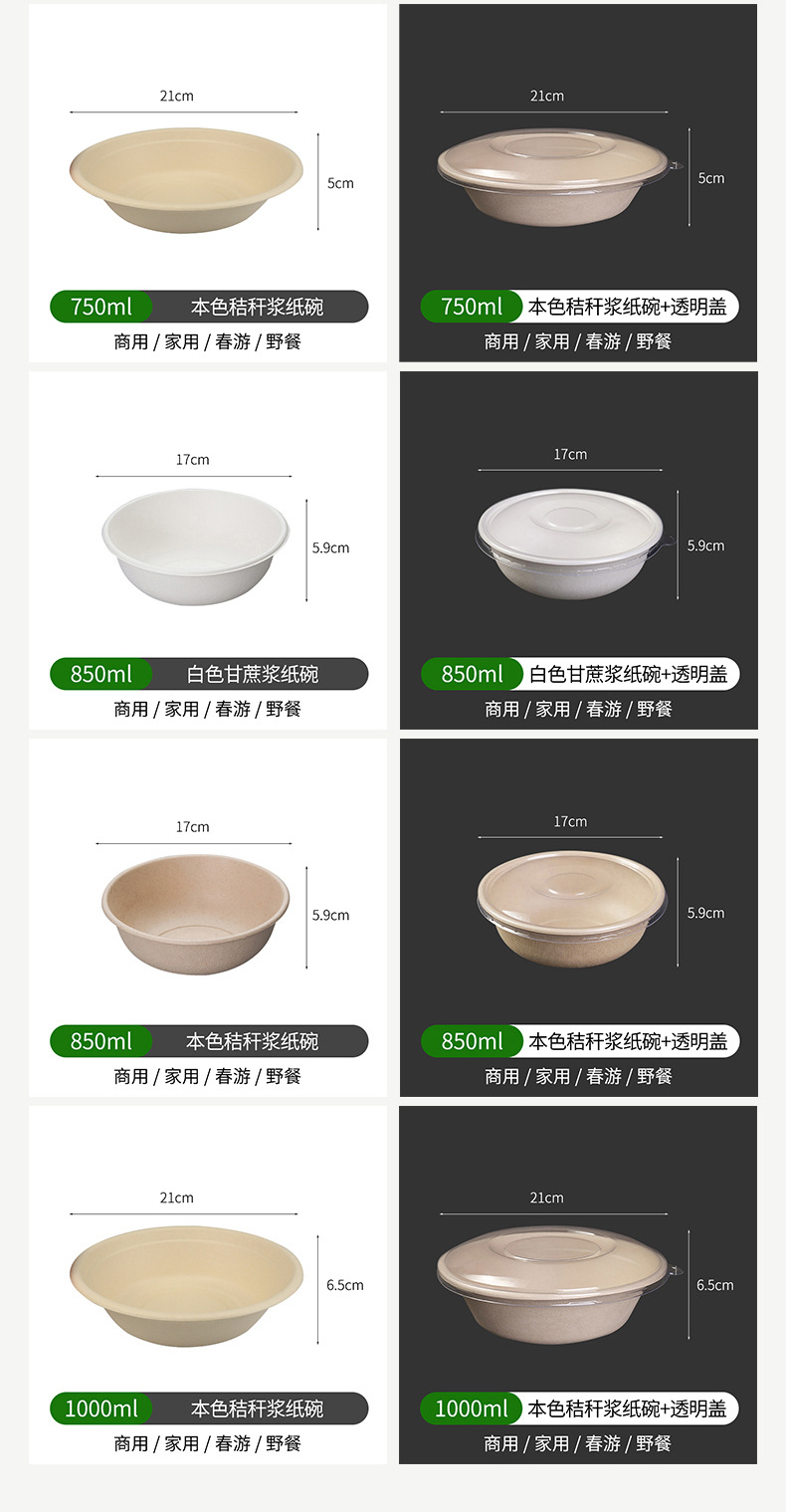 750ml natural color paper bowl + transparency cover