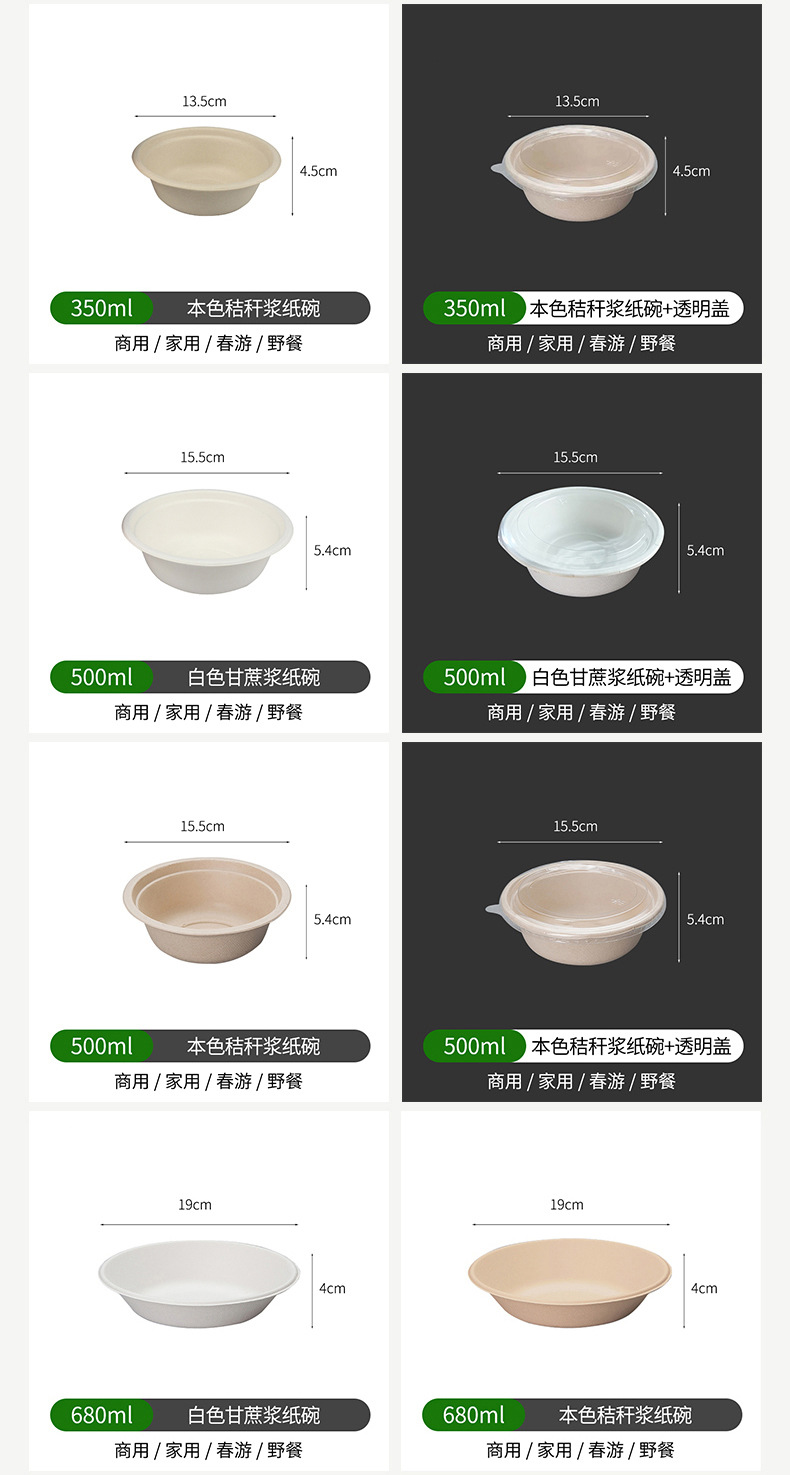 500ml natural color paper bowl + transparency cover