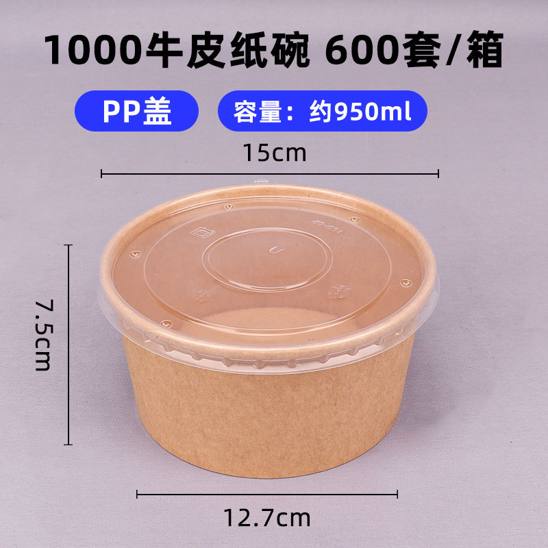 1000 kraft paper bowl + pp cover (600 sets)