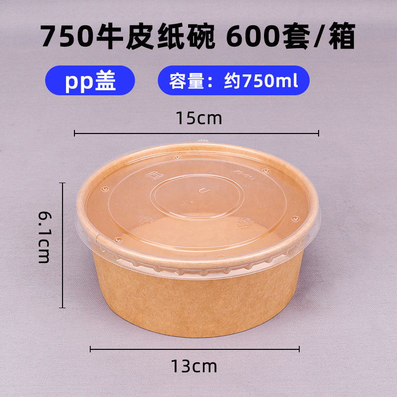 750 kraft paper bowl + pp cover (600 sets)